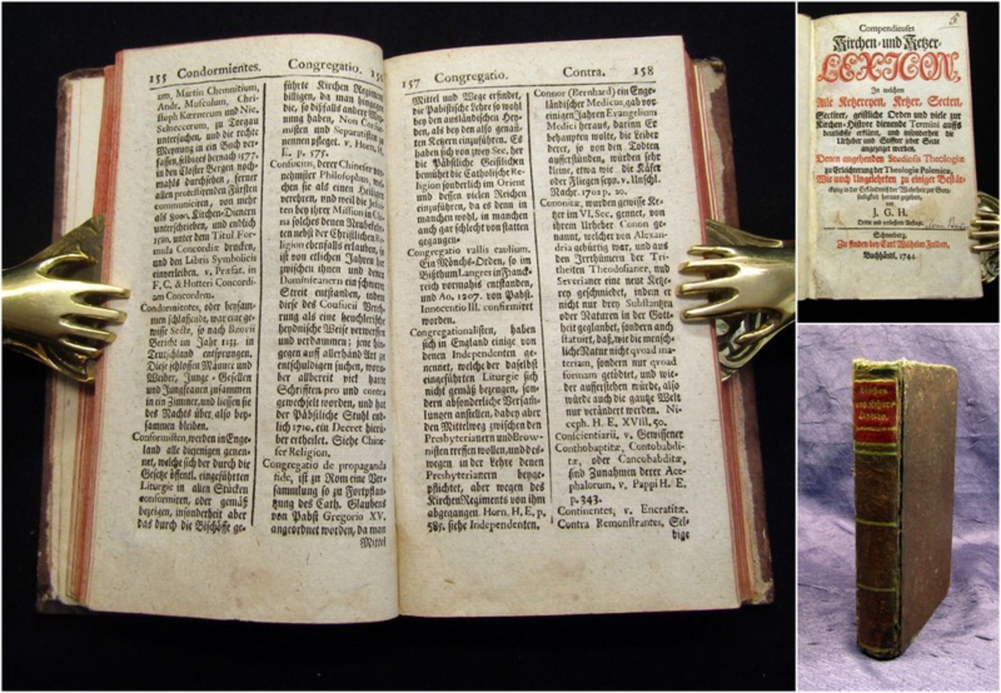 Luther, Martin. Concordia. Pia Et Unanimi consensu Repetita Confessio Fidei Et Doctrinae Electorum, Principum, Et Ordinum Imperii, Atque Eorundem Theologorum.... Lipsiae, Gosse; Uhmann, 1677. kl 8°(16,5x11cm), doppelblattgroßer Kupfertitel, 19 Bll., 882 S., 35 Bll., 314 S., 7 Bll., Pergamenteinband mit spanischen Kanten. Rares Buch in lateinischer Sprache. - Einband berieben und bestoßen, Spiegel reastauriert und mit hs. Vermerken, Papier stellenw. mit hs. Notizen/Unterstreichungen, altersbedingt gebräunt und fingerfleckig. Bestell-Nr: 3-0-168..........350,00 € (inkl. MwSt. zzgl. Versand) | ![]() | |