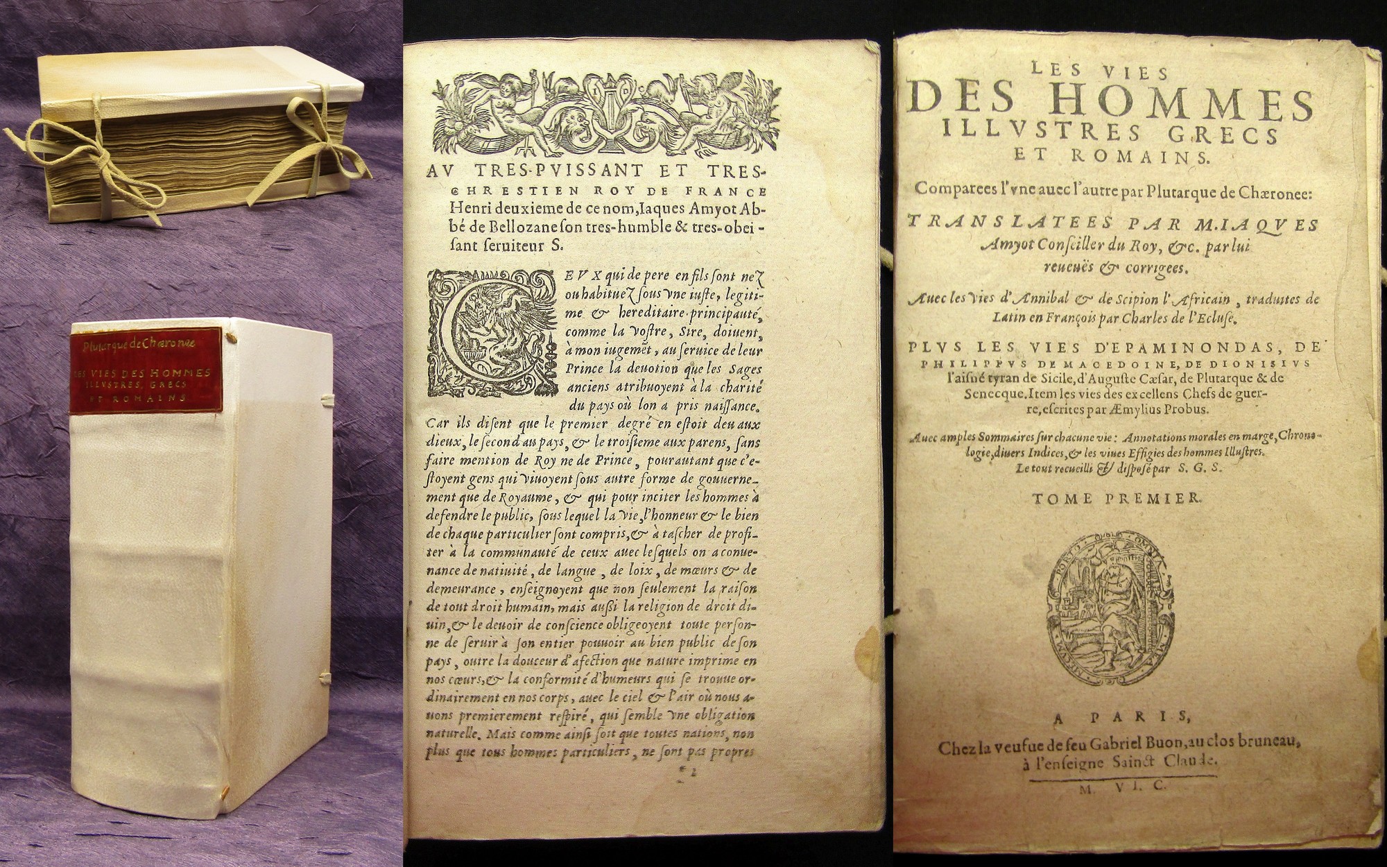 Plutarch; Amyot, Jacques; Clusius, Carolus. Les vies des hommes illustres, grecs et romains. Paris, G. Buon, 1582. 8°(19x12cm), 15 Bll., 1181 S., 45 nn. S., neuerer Ledereinband mit 2 Buchbändern und spanischen Kanten. Über das Leben berühmter griechischer und römischer Männer - Einband minimalst berieben, Spiegel mit hs. Vermerken, teilw. Seiten restauriert (ohne Textverluste), Papier stellenw. knickspurig und altersbedingt gebräunt. Bestell-Nr: 3-0-150..........verkauft | ![]() | |