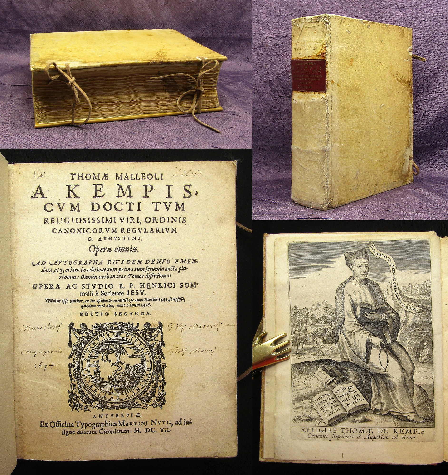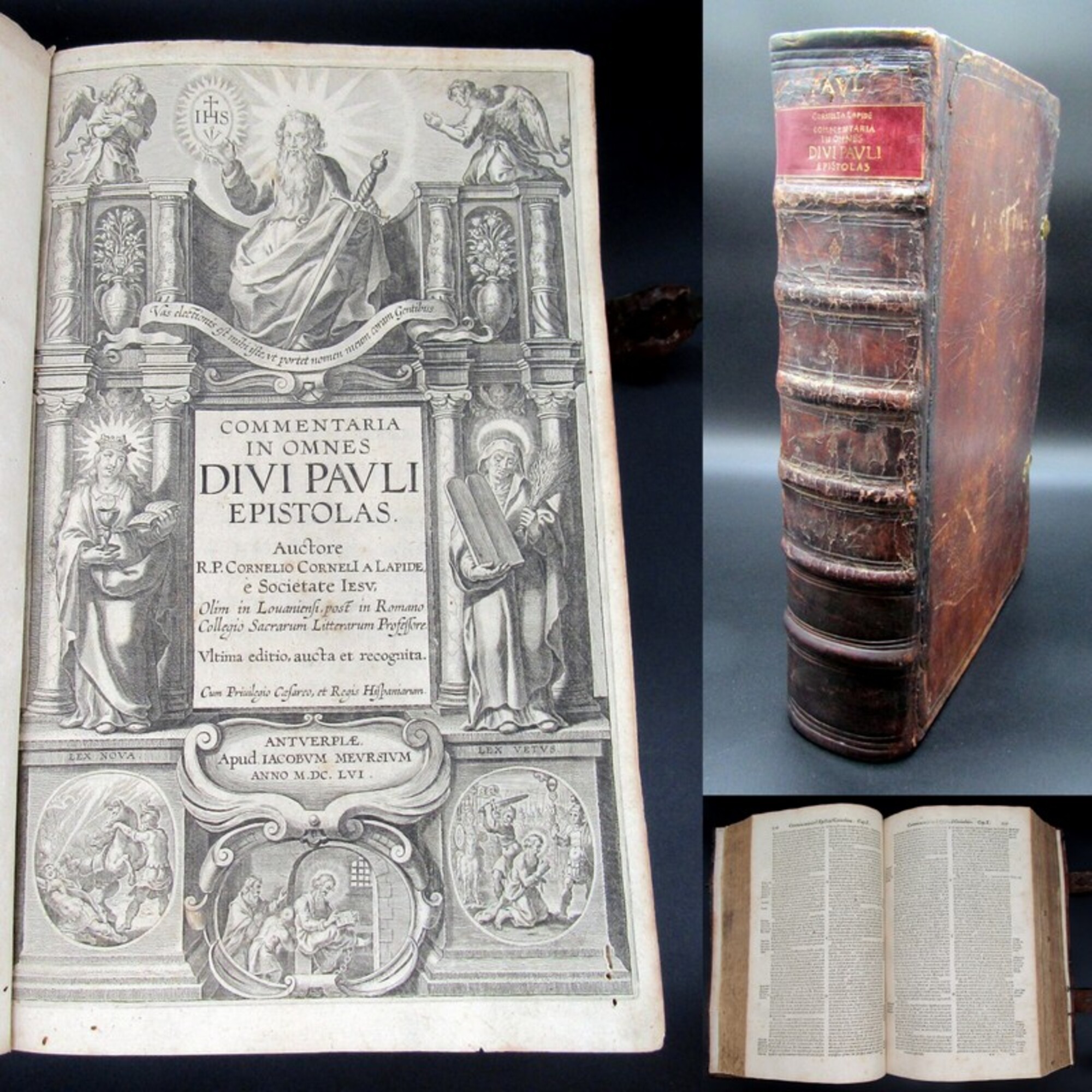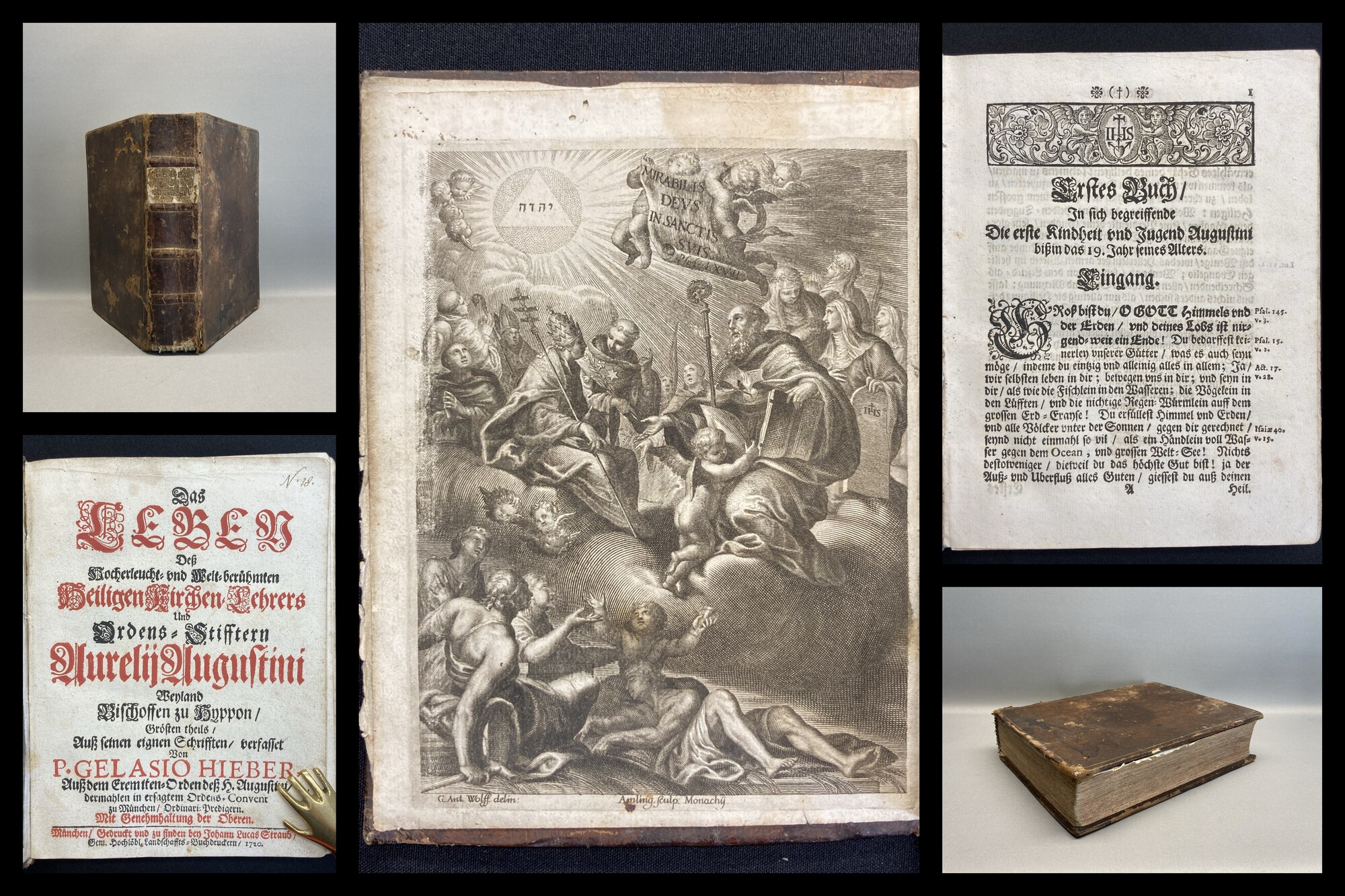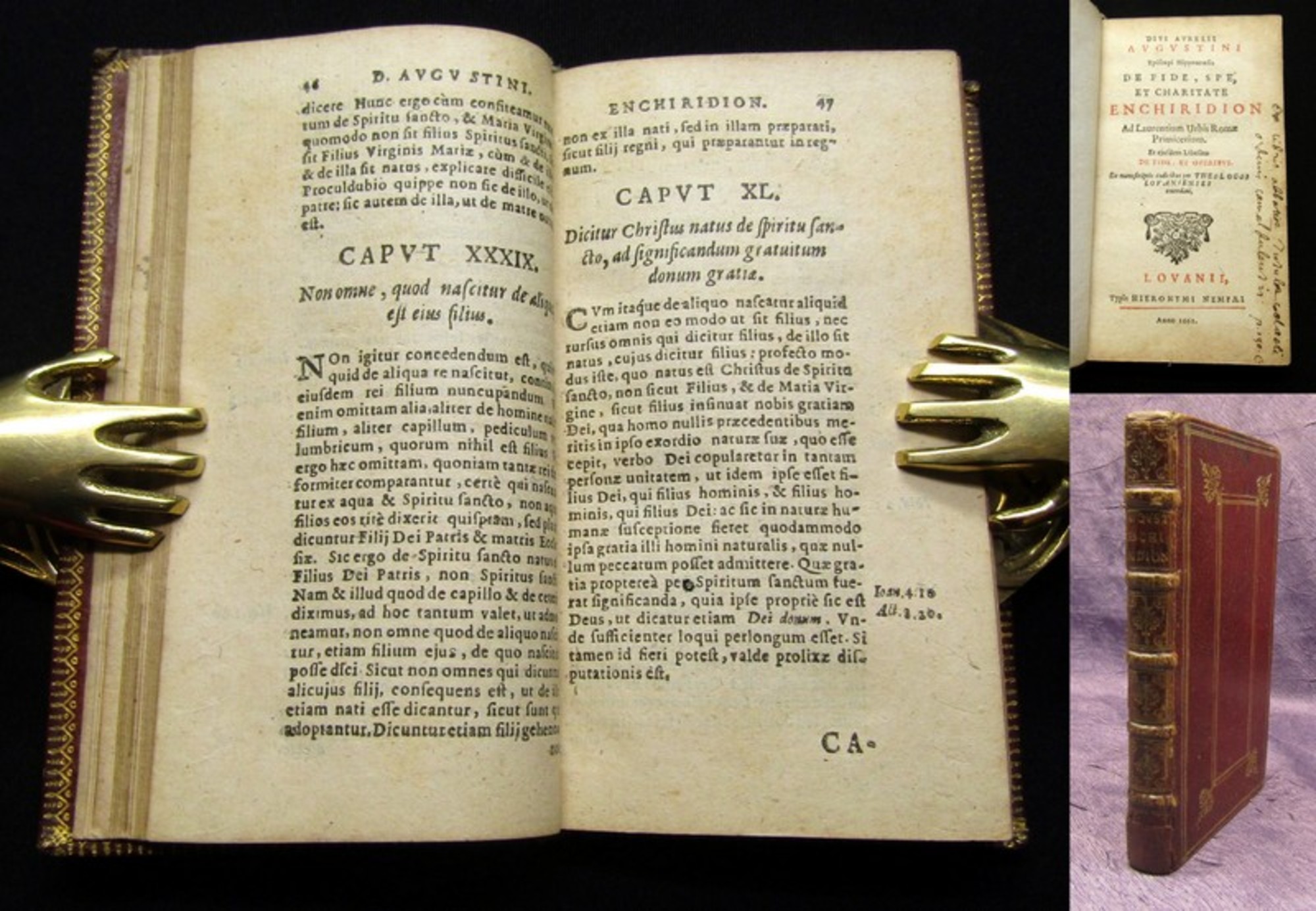 Augustine, Saint, Bishop of Hippo. Divi Aurelii Augustini episcopi Hipponensis de fide, spe, et charitate Enchiridion ad Laurentium urbis Romae primicerium.. Lovanii, Nempaei, 1661. 12°(13,5x8cm), Titelvignette, Druckermarke, 204 S., 11 nn. S., Ledereinband. Alternative Titel: Glaube, Hoffnung und Liebe. - dekorativer Einband berieben und bestoßen, Rücken und Deckel mit floraler Goldprägung, goldener Rundumschnitt, Vorsatz und Titel mit hs. Notizen, Papier altersbedingt gebräunt. Bestell-Nr: 3-0-172..........500,00 € (inkl. MwSt. zzgl. Versand) | ![]() | |