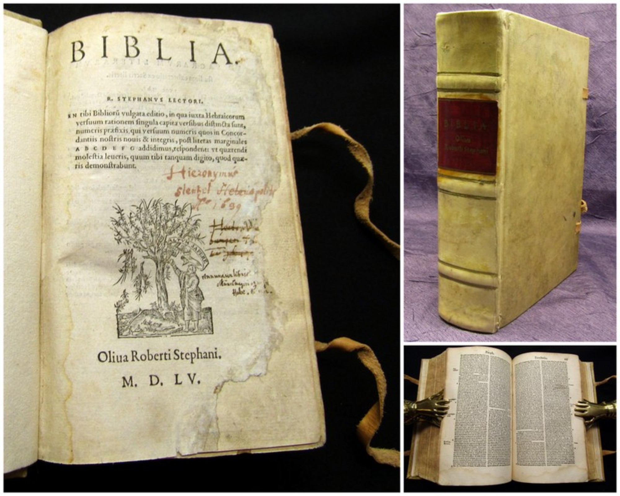 Stephanus, Rob. Biblia / R. Stephanus lectori - En tibi Bibliorum vulgata editio. Paris, Stephanus, 1555. 8°(18,5x13cm), (12) 303 Bll., 74 Bll., 3 nn. S., später Pergamenteinband mit Rs. und Bindebändern. Brunet I/875; Grasse I/394; Ebert I/2304 - Einband berieben un dbestoßen, Titel angerändert ohne Textberührung, Titel mit hs. Notizen, vereinzelte hs. Notizen, Papier altersbedingt gebräunt und fleckig. Bestell-Nr: 3-0-170..........verkauft | ![]() | |