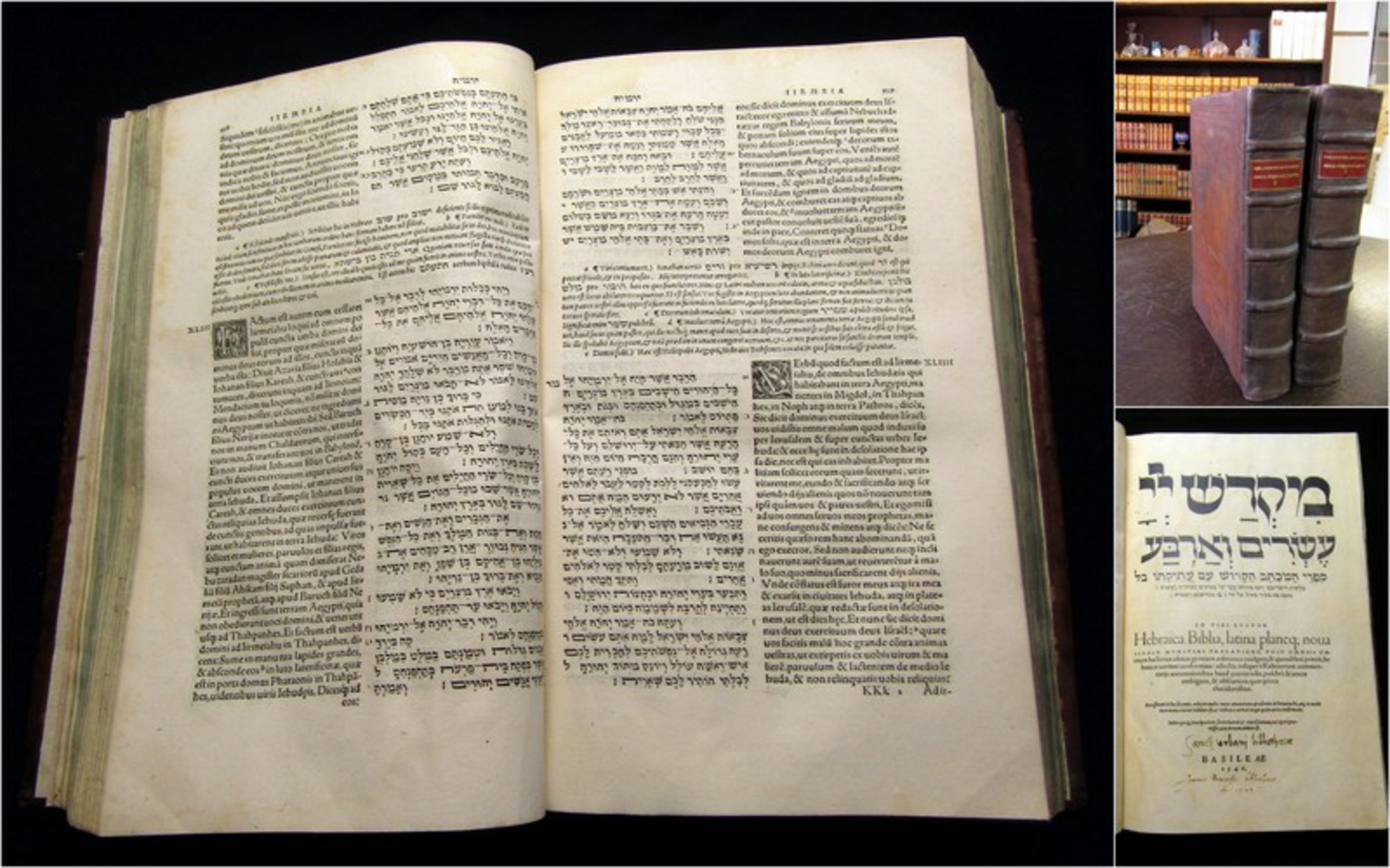 Münster, Sebastian. Hebraica Biblia, latina planeq; noua - 2 Bde. Basel, Isengrin und Petri, 1546. 4°(32x23cm), fehlende Bll. in Faksimile ergänzt, 20 Bll., 742 S., S. 747-1587(ohne S. 745/746), Ledereinbände. Darlow_M. 5090.; Lüthi 76; Adams B 1241. STC 92 - Zweite Ausgabe der erstmals 1534 erschienenen Bibelausgabe (Altes Testament) mit hebräisch-lateinischem Paralleltext. - Einband berieben und bestoßen, Einband unter Verwendung des alten Materials fachmännisch restauriert, Rs. und Vorsätze erneuert, Deckel wurmspurig, es fehlen die ersten 20 Bll. mit Titel sowie die letzte Seite(in Kopie restauriert), Papier altersbedingt gebräunt, leicht fleckig und wasserrandig. Bestell-Nr: 3-0-179..........verkauft | ![]() | |