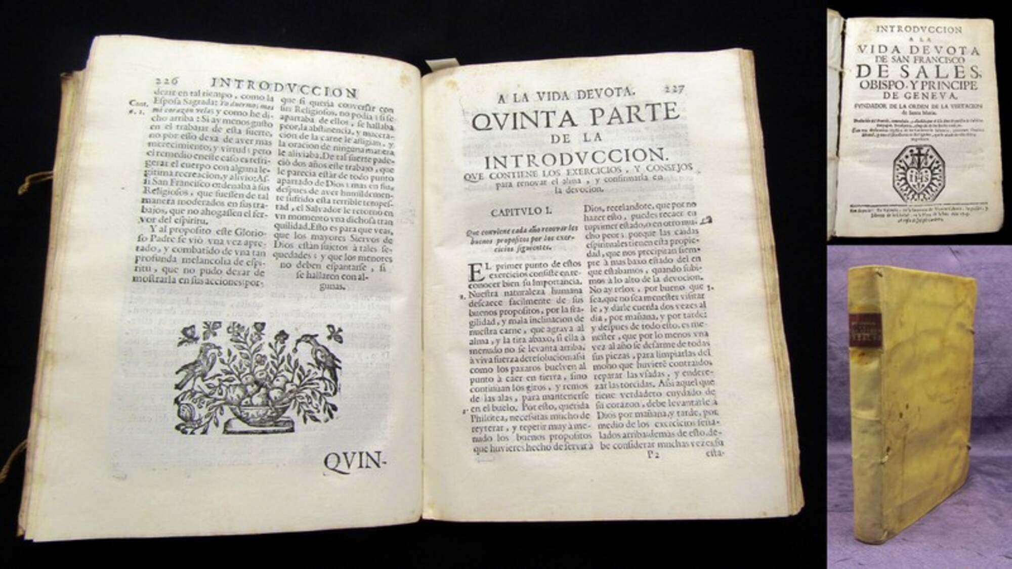 Santo, Francisco de Sales. INTRODUCCIÓN A LA VIDA DEVOTA DE SAN FRANCISCO DE SALES: Obispo y príncipe de Ginebra, fundador de la orden de la visitación de Santa María.; Directorio de Religiosas, para su Espiritual Perfeccion. Compuesto por San Francisco de Sales - 2 Titel in 1 Bd.. Madrid, Imprenta Real, 1703. N8°(20x16cm), alte Druckermarke, 12 Bll., 277 S., 53 S., 2 nn S., Pergamenteinband . Anleitung zum frommen Leben. - Einband berieben, bestoßen und fleckig, hs. Rs., Papier altersbedingt gebräunt, letzte Seiten leicht wasserrandig. Bestell-Nr: 3-0-196..........190,00 € (inkl. MwSt. zzgl. Versand) | ![]() | |
