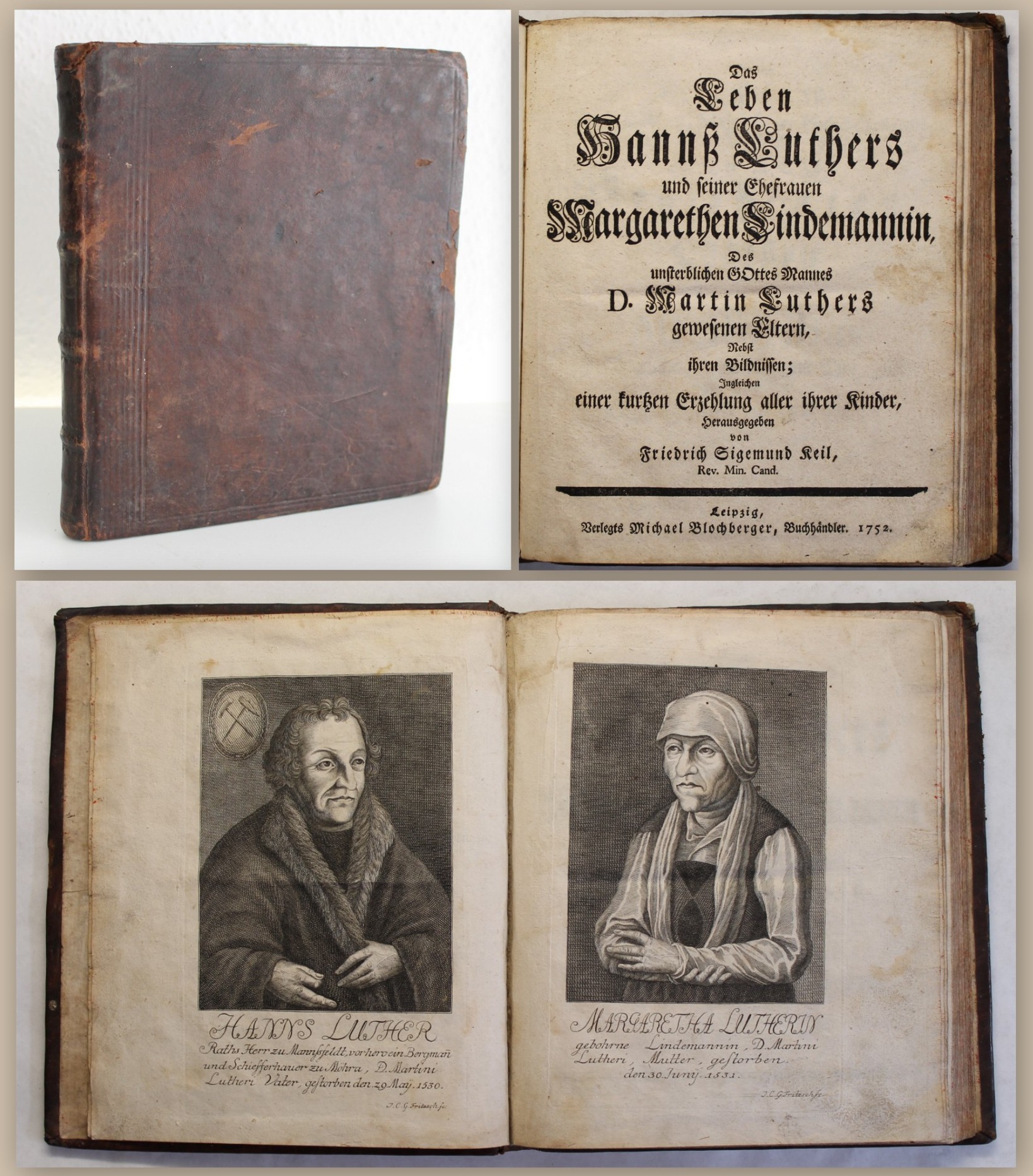 Walther, Johannes / Luther, Martin. Epitaphium Des Ehrwirdigen Herrn und Vaters / Martini Luthers / der Heiligen schrifft Doctorn / und des reinen wahren Evangelions trewen Lerhers und Predigers. Wittenberg, o.Dr. (Rhau), o.J. (1546). 8° (20x14,5cm), mit einem Portraitmedaillon in Holzsschnitt und zwei blattgroßen Holzschnittportraits von Lucas Cranach d. Jüngeren, 8 nn. Bll., neuerer Pgmt. Pegg 2987; Maltzahn I,948 - Einer der hervorragendsten Nachrufe auf Luther, verfasst von Luthers Freund und langjährigem musikalischen Berater Johann Walther (1496-1570). Als Komponist erlangte er seine Bedeutung durch die Melodie zu Luthers "Eine feste Burg ist unser Gott". Vgl. zusätzlich Schottenloher 10953 a: "Anlässlich des Todes Luthers sind eine ganze Reihe von poetischen Nachrufen erschienen. Vor die Frage gestellt, welche wohl am meisten eine Neuausgabe verdienten, habe ich mich für das "Epitaphium" entschieden ... Die beiden Gedichte sind zweifellos vorher als Einblätter ausgegangen". Die beiden ganzseitigen Portraits zeigen Kurfürst Johann Friedrich von Sachsen, sowie Luther im Predigerrock, mit beiden Händen ein Buch haltend. Dabei handelt es sich um eigenhändige Arbeiten von Lucas Cranach dem Jüngeren [vgl. Clemen, Flugschriften aus der Reformationszeit, N.F., Bd. I, Nr. 4]. - Einband ohne Gebrauchsspuren. Papier etwas gebräunt und etwas braunfleckig. Gutes Exemplar.. Bestell-Nr: 3-0-229..........verkauft | ||