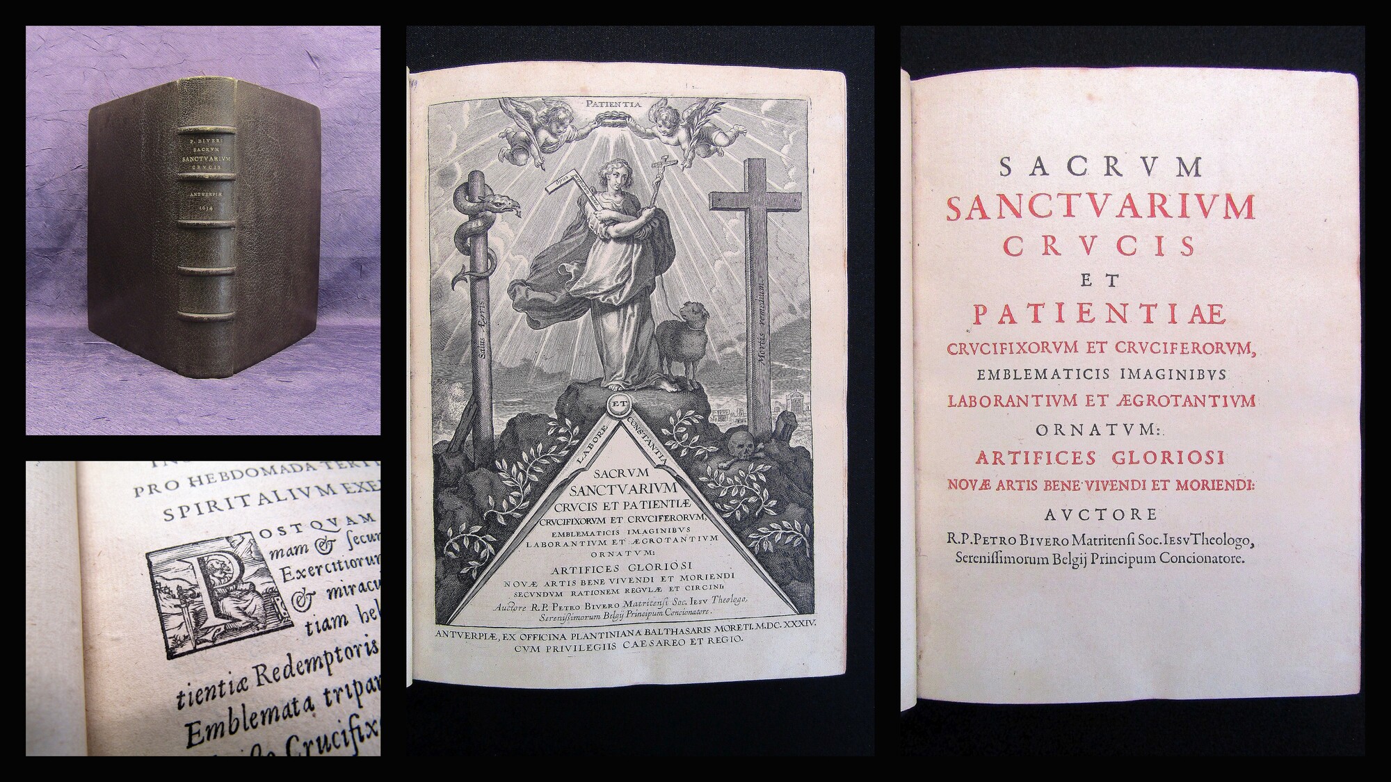 Bivero, Petro de. Sacrum sanctuarium crucis et patientiae crucifixorum et cruciferorum, emblematicis imaginibus ... ornatum. Antwerpen, Balthasar Moretus fur die Offizin Plantin, 1634. 8°, 10 Bl., 678 S., 10 Bl. Mit Kupfertitel, 5 gestochenen Vignetten und 70 Kupfertafeln nach Adrian Collaert, meisterlicher Ganzleder-Handeinband aus der Werkstatt Thibaron-Joly (um 1890), über 5 Bünden mit umlaufendem Goldschnitt, goldgeprägtem Rückentitel, Kantenvergoldung und prächtiger Innenkantenvergoldung. De Backer-Sommervogel I, 1525, 7. Landwehr 44. Brunet I, 955. Graesse I, 433. Vgl. Jocher I, 1110 - Erste Ausgabe dieser Schrift uber Vita und Marter der Heiligen und deren moralische Anwendung. Der spanischen Jesuitenpater und Professor für Rhetorik, Philosophie und Theologie Pedro de Bivero (1572-1656) war Beichtvater des Marquis d'Aytona, dem Gouverneur der spanischen Provinz Belgiens.Die bemerkenswert fein gestochenen und kontrastreichen Kupfer von Adrian Collaert (1560-1618) zeigen die verschiedenen Martyrien der Heiligen, darunter einige seltene Darstellungen von gefolterten barbusigen Frauen am Kreuz. Eine weitere Kreuzigung zeigt an Stelle des abgeschlagenen Hauptes den ubrig gebliebenen Heiligenschein. Die Kupfer sind fur die Schrift Triumphus Jesu Christi von P. B. Ricci hergestellt und nach einigen Retuschen von Charles de Mallery fur dieses Werk wieder verwendet worden (vgl. De Backer-Sommervogel). Exlibri auf vorderem Spiegel "E. Délicount". Einband mit minimalst berieben, papierbedingte leichte gleichmäßige Bräunung, veinzelt minmal fleckig. Gesamt sehr schönes Exemplar des seltenen Werkes. Bestell-Nr: 3-0-238..........1.800,00 € (inkl. MwSt. zzgl. Versand) | ![]() | |