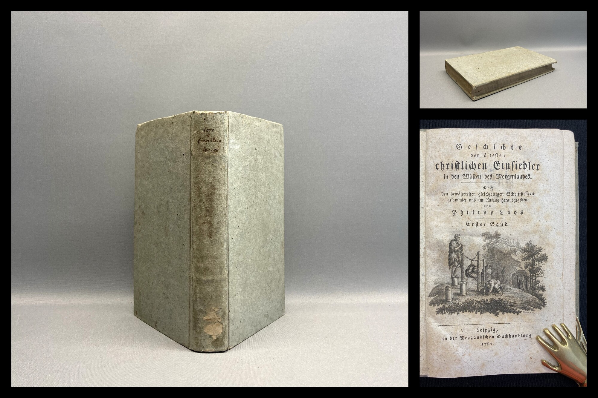 Loos, Philipp. Geschichte der ältesten christlichen Einsiedler in den Wüsten des Morgenlandes. 1. Band. Leipzig, Weygandische Buchhandlung, 1787. kl.8°(17x10cm), mit gestochener Titelvignette, 432 S., OPbd.. 1. Band der zweibändigen Reihe die sich mit dem christlichen Glauben und der Hingabe zu Gott beschäftigte. - Rücken mit Fehlstelle, leicht berieben und bestoßen. Vorderer Spiegel, Titl verso und Seite 431/432 gestempelt. Schmutzbll. mit blei beschrieben. Papier gering gebräunt und vereinzelt braunfleckig. Bestell-Nr: 3-0-249..........180,00 € (inkl. MwSt. zzgl. Versand) | ![]() | |
