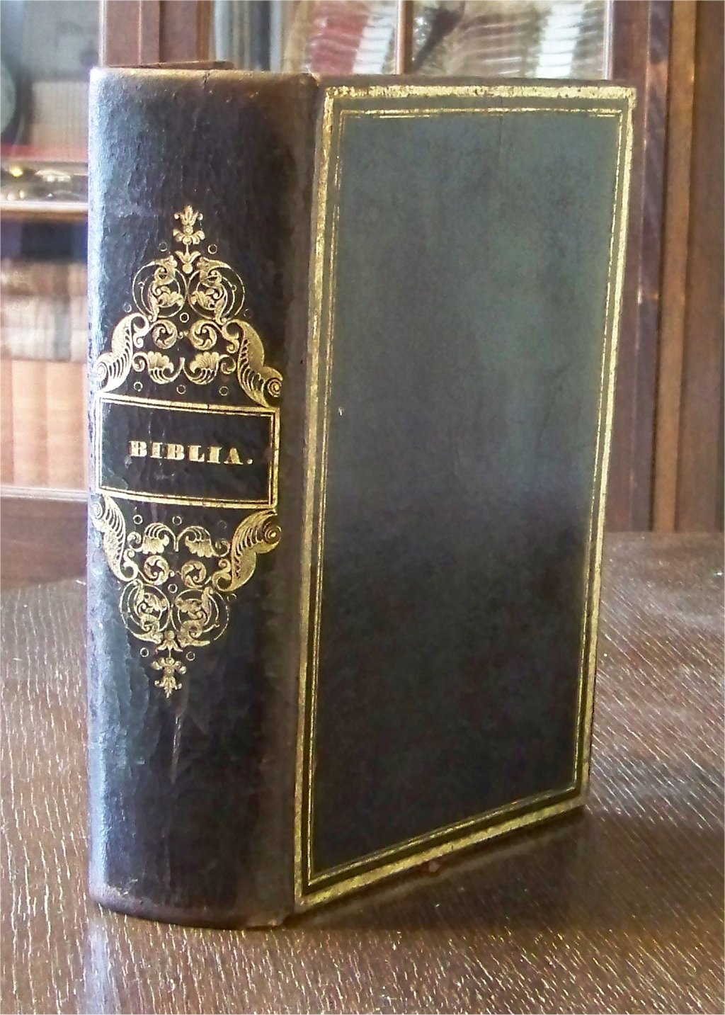 Luther, Dr Martin. Haus- und Familienbibel oder die ganze heilige Schrift des alten und neuen Testaments nach der deutschen Übersetztung D. Martin Luthers. Wohlfeilste Prachtausgabe . Hildburghausen u. New-York, Bibliographisches Institut, 1831 - 1833. 4°. Mit 24 Kupfern auf Taf.. Titel, 2 Bl. 1727 Spalten, 496 Spalten, 1 Bl.. Ldr d. Z. mit schmuckvoller Rvg. u. umlaufendem Grünschnitt. Der Ledereinband ist leicht berieben, am hinteren Buchdeckel, im unteren Bereich einige Wurmlöcher. Innen papierbedingt leicht gebräunt und fleckig. Gesamt ein schönes Exemplar. . Bestell-Nr: 3-0-4..........verkauft | ![]() | |