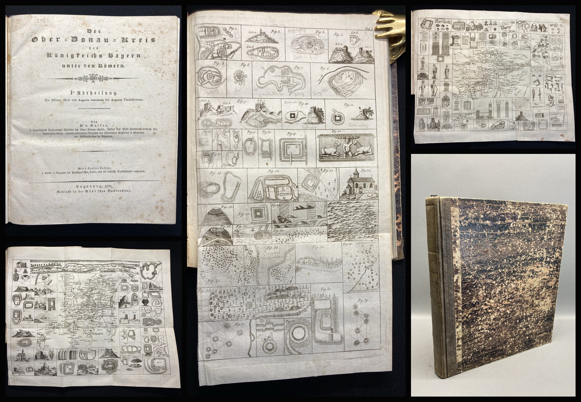 Vallade, Carl von. Die Belagerung von Neuburg a. D. 1703. Neuburg a. D., Grießmayer, 1889. 8°(22x14cm), mit 1(gefalt.) bildlichen Darstellung der Stadt und 1(gefalt.) Plane von Neuburg, Or. Ln mit goldgeprägtem Rücken, marmorierter Rundumschnitt. Einband kaum berieben, an den Ecken und den Kapitalen bestoßen. Stempel befinden sich auf beiden spiegeln, dem Titel und der Ansicht sowie dem Sitiuationsplan der Belagerung. Papier gering gebräunt. Bestell-Nr: 7-2-737..........350,00 € (inkl. MwSt. zzgl. Versand) | ||