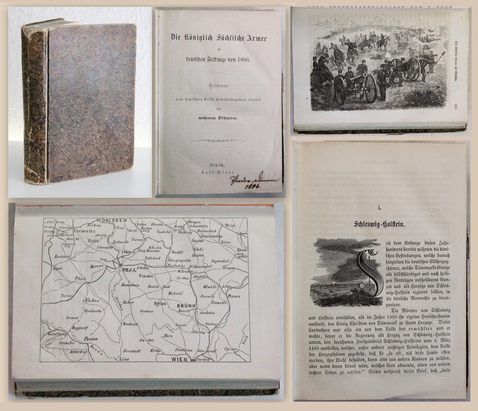 Anonym. Die königlich sächsische Armee im deutschen Feldzuge von 1866. Erlebnisse dem deutschen Volke wahrheitsgetreu erzählt von mehreren Offizieren. Leipzig, Carl Minde, o.J. (1867). 8°, mit 1 Karte, 1 ganzseitigen Abbildung und wenigen figürlichen Initialen, 479 S., HLn. d. Zt. Einband berieben und leicht bestoßen, Kapitale abgegriffen, oberes Kapital mit kleiner Fehlstelle. Vorsatz mit altem hs. Besitzeintrag Papier vereinzelt minimal braunfleckig, Seite 235-238 mit kleineren Tintenflecken, gutes Exemplar. Bestell-Nr: 8-0-198..........verkauft | ![]() | |