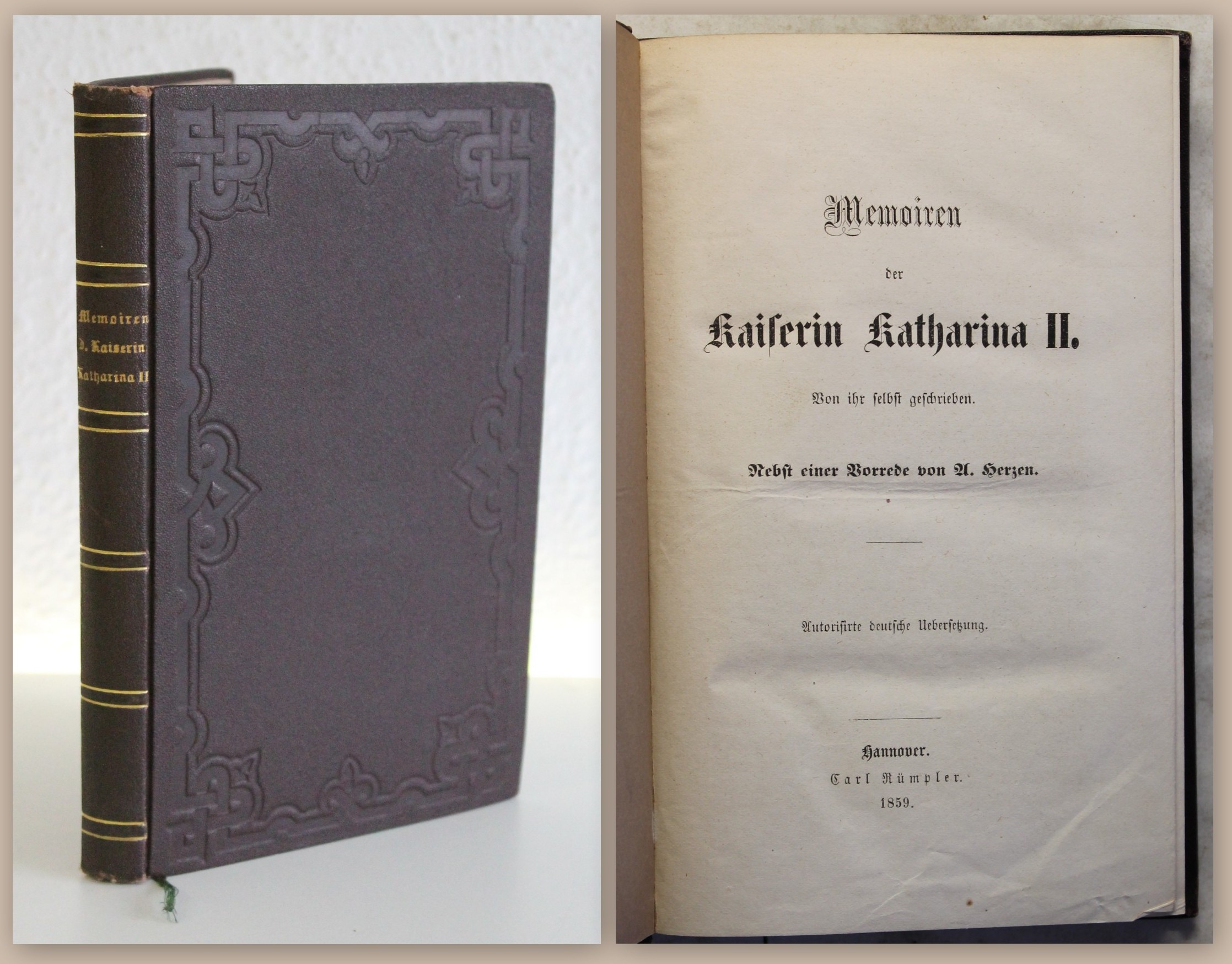 Anonym [Seume, Joh. Gottfried]. Über das Leben und den Karakter der Kaiserin von Russland Katharina II. Mit Freymüthigkeit und Unparteylichkeit. Altona (d.i. Leipzig), o.V. (Göschen), 1797. 8°, 160 S., Ppbd. d. Zt. Holzmann-Boh. IV, 6283 - Weller I, 169 - Goed. V, 419.6 - Erste Ausgabe, anonym erschienen - Seltene, frühe Schrift Seume's nach seiner Rückkehr nach Leipzig entstanden, in der er die russischen Zustände kritisiert, die er während seines Aufenthalts in Polen 1792-1796 als Sekretär des Generals Ingelström und russischer Offizier kennengelernt hatte. Einband berieben, bestossen und fleckig. Papier minimal gebräunt, sehr vereinzelt gering braunfleckig. S. 137/138 mit kl. Eckabriss im weißen Rand. Vorderer Spiegel mit 2 alten Besitzeinträgen. Insgesamt gutes Exemplar. Bestell-Nr: 8-0-82..........verkauft | ||