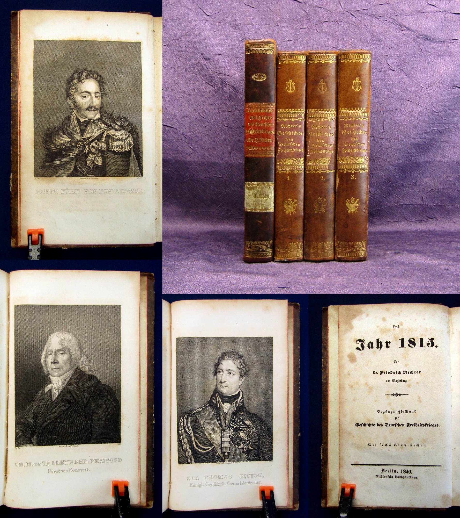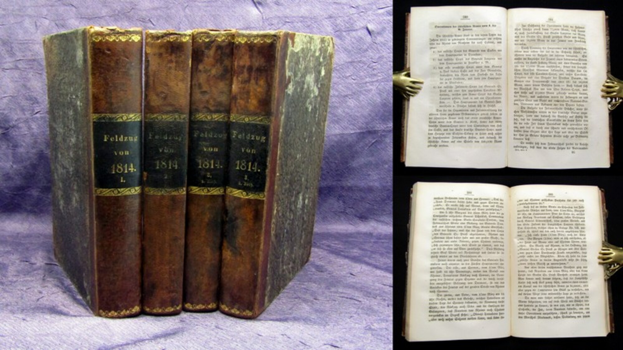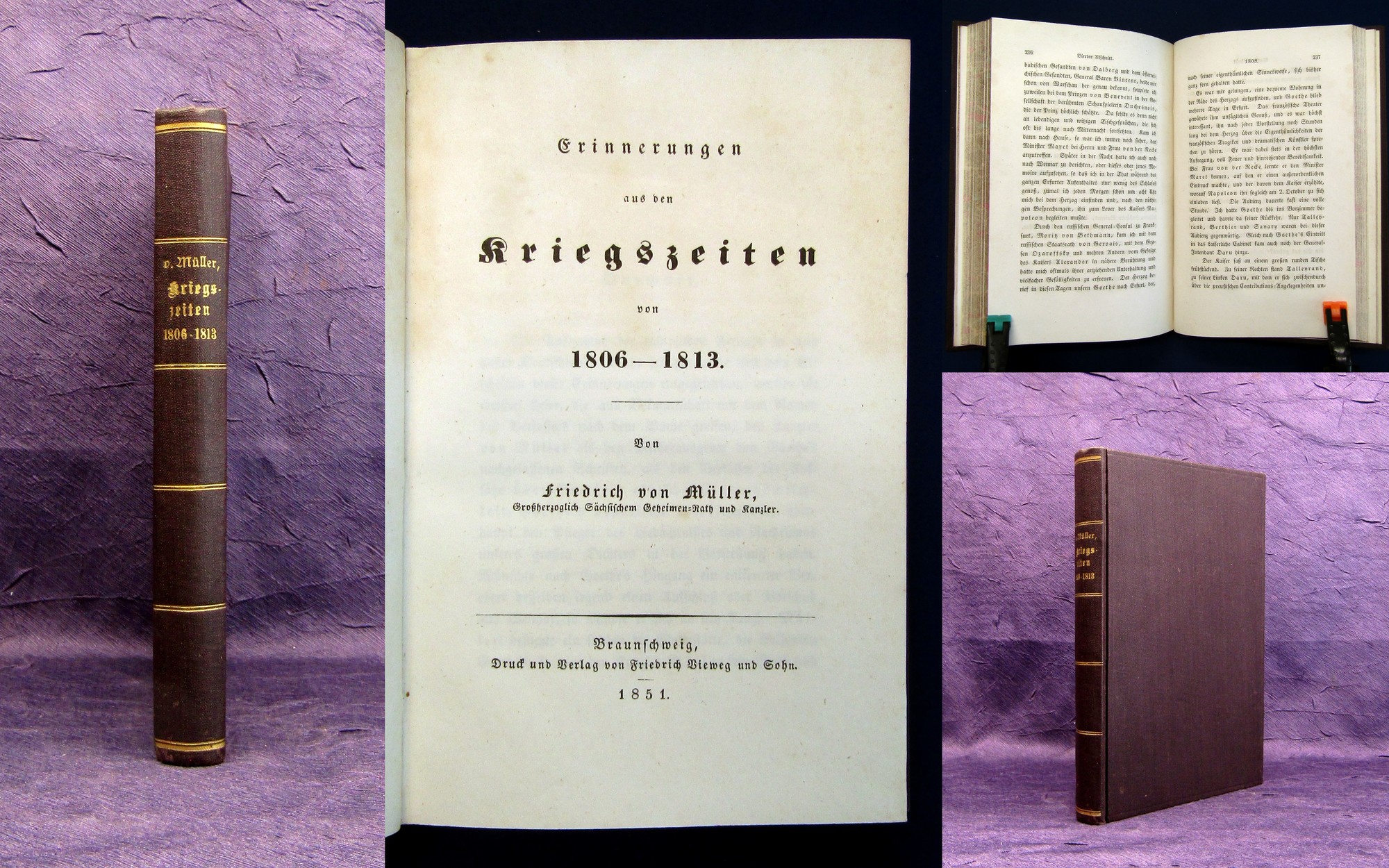 . Geschichte der Feldzüge Napoleons gegen Preußen und Rußland in den Jahren 1806 und 1807; oder Gemälde des vierten Koalitionskriegs - 2 Bde.. Zwickau & Leipzig, Schumann, 1809. kl8°(18x12cm), 2 Frontispiz ( Marchal Soult, Marchal Davoust), VIII, 448 S., XVI, 524 S., Halbledereinbände. Einbände berieben und bestoßen, florale Goldprägung am Rücken, roter Rundumschnitt, Papier altersbedingt gebräunt und braunfleckig. Bestell-Nr: 8-3-559..........verkauft | ||