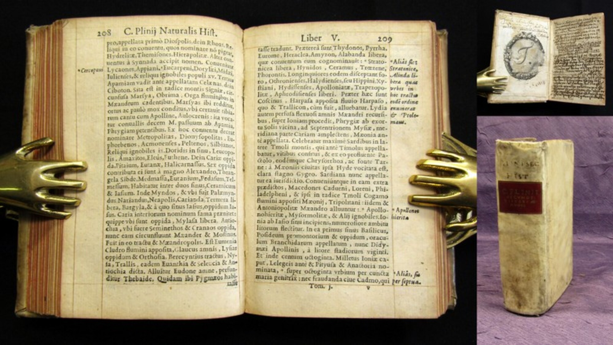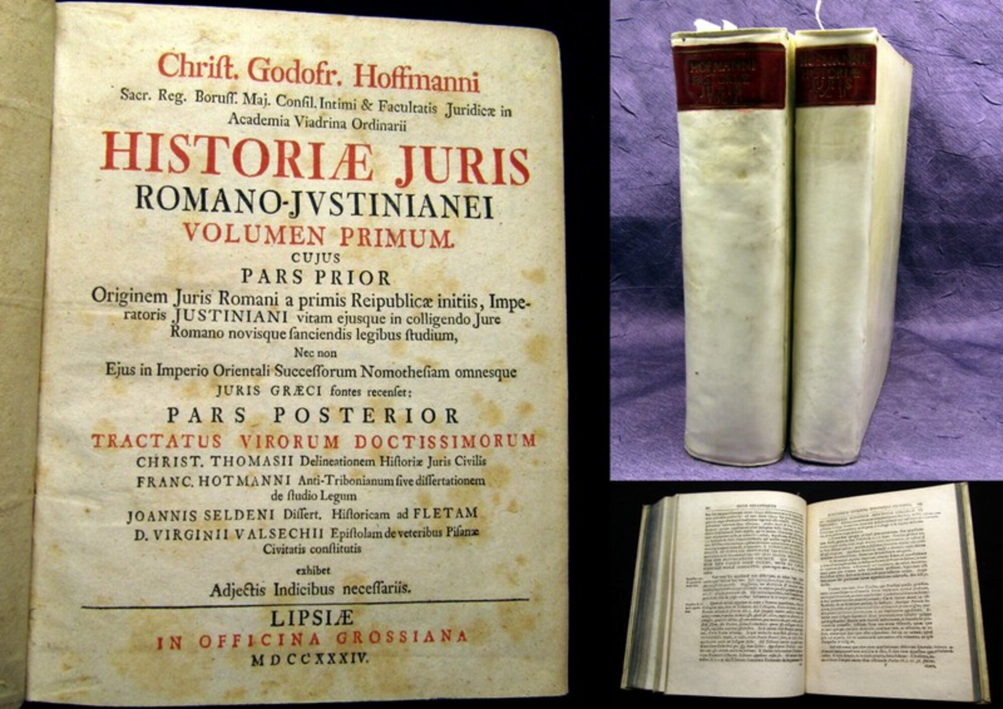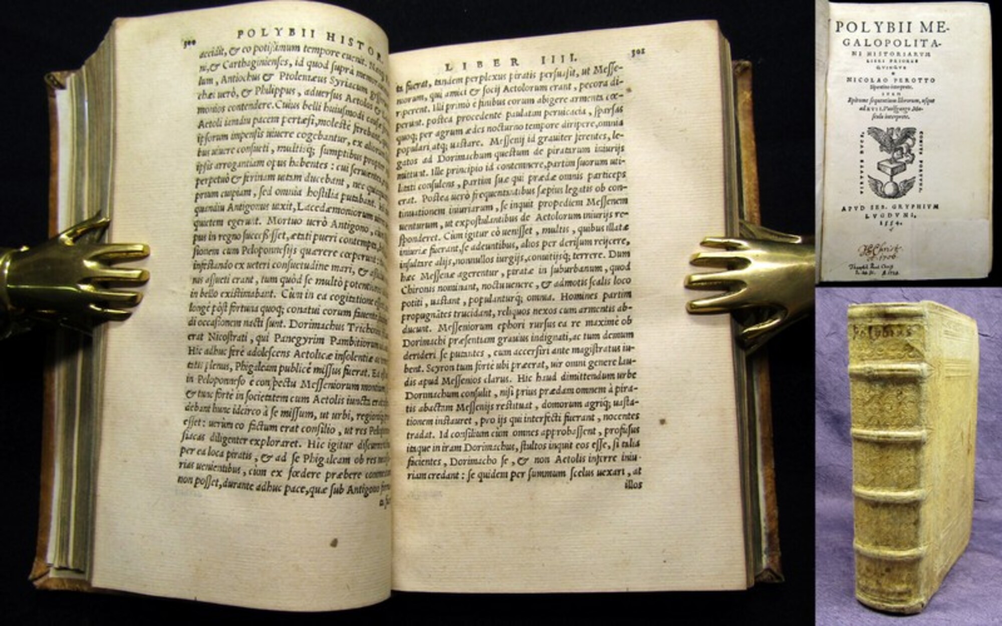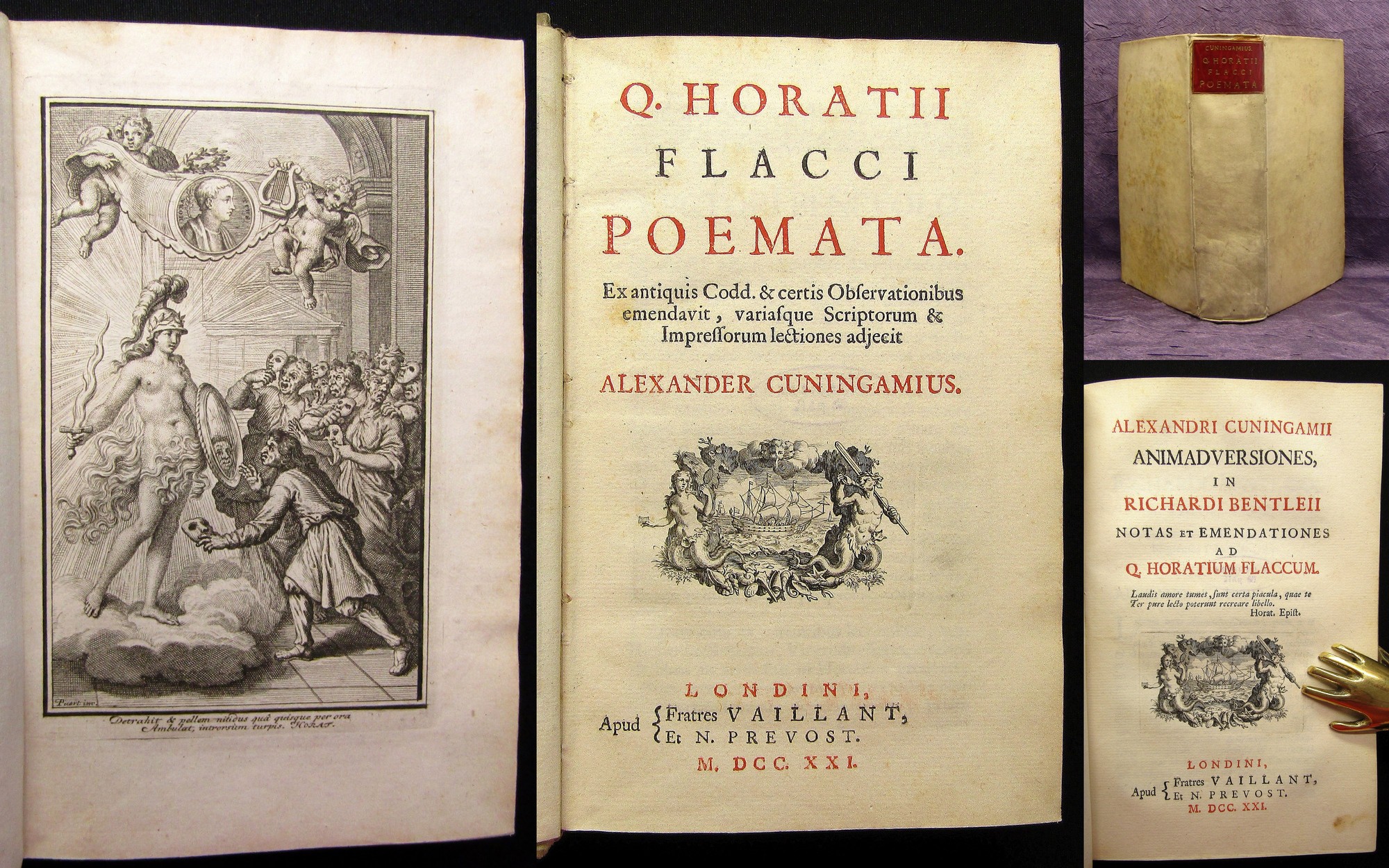 Appianus. Appianu Alexandreos Romaika - Appiani Alexandrini Romanarum Historiarum. Alexander Tollius, Utrumque textum multis in locis emendavit, correxit & Henrici Stephani, Ac Doctorum quorundam Virorum Selectas Annotationes adjecit. Pars prior & Pars altera. 2 Bde. in 2. Amstelodami, Janssonius, Someren, 1670. 8°(20x12cm), 2 Frontispiz, 10 Bll., 1229 S., 45 Bll. (Index), Pergamenteinbände d. Zt. mit hs. Rückentitel. Jöcher IV 1239 - Appianos, 2. Jh. n. Chr., aus Alexandreia, dann Rom als Advokat tätig, verfäßte in grieschicher Sprache eine Römische Geschichte von den Anfängen bis Trajan; die einzelnen Völker und Länder werden in der Reihenfolge behandelt, in der sie dem Imperium einverbleibt worden waren. Größere Teile des Werkes sind erhalten; die Benutzung der schwer nachweisbaren Quellen scheint selbständig zu sein, der Stil ist anspruchslos. - Einbände berieben und bestoßen, hs. Rs., latainisch-grieschicher Paralelltext, Papier altersbedingt gebräunt. Bestell-Nr: 8-0-526..........verkauft | ![]() | |