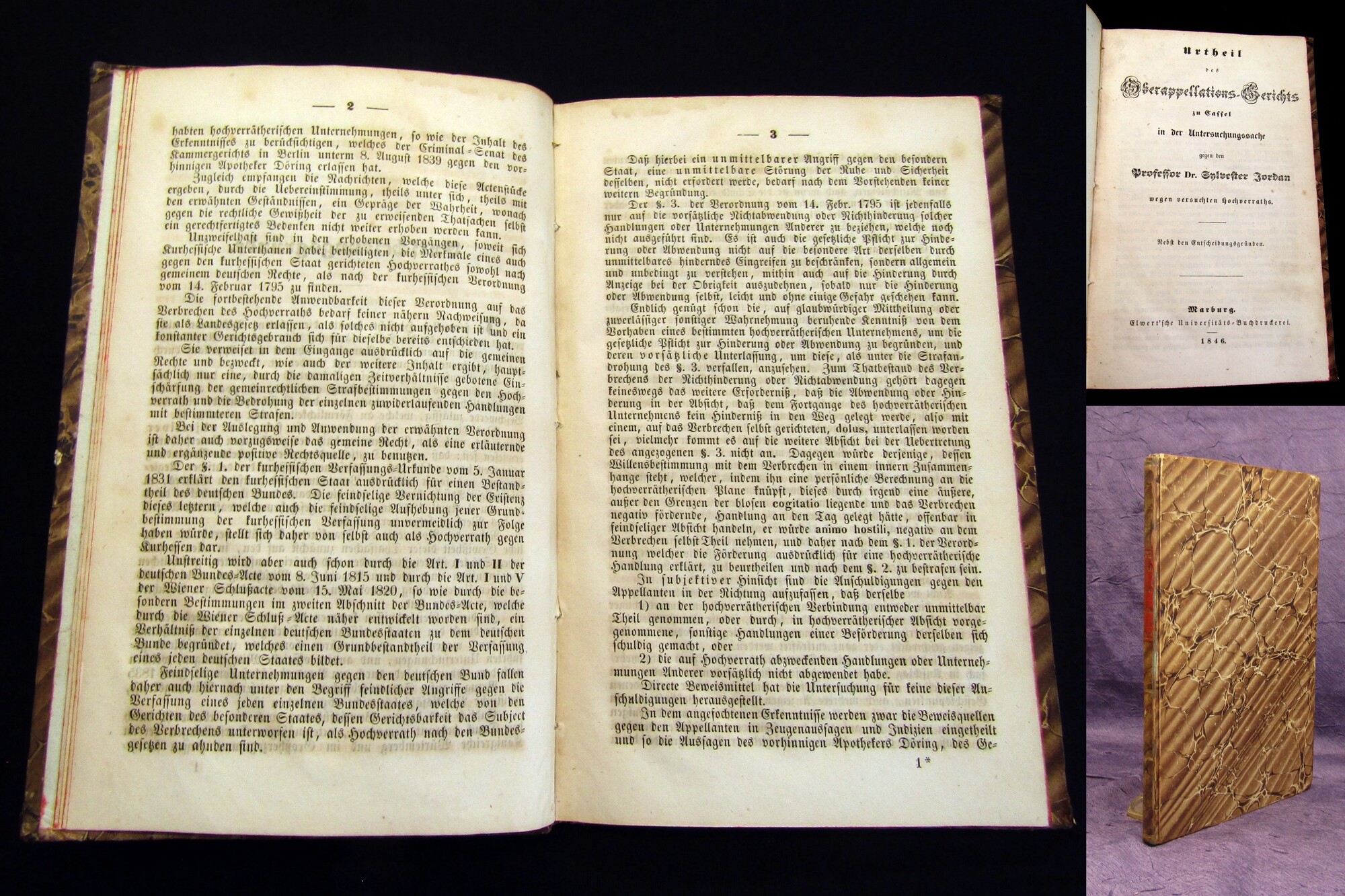 Anonym (Marcard, Heinrich Matthias). Reverieen eines deutschen Patrioten, über die jetzige Lage von Europa und einen möglichen Frieden. Deutschland, o. V., 1806. Kl.8°, 2 Bl., 139 S, späterer HLn. unter verwendung des Orig Broschurdeckels. Holzmann-B. III, 12210. Weller, Druckorte I, 206. - Vgl. Hirsch-H. IV, 67. ADB XX, 294. Hamberger-M. X, 245 und XVIII, 619. - Anonym erschienene antinapoleonische Schrift des Badearztes Heinrich Matthias Marcard, der durch seine "Beschreibung von Pyrmont" (1784-85) und seine "Reise durch die französische Schweiz und Italien" (1798) bekannt wurde. Ebenfalls anonym erschienen von ihm "Der Franzosen Spiegel" (um 1800) und andere politische Schriften. Papierbedingt leicht gebräunt und etwas fleckig, ca 60 S. mit Wasserrand, Stempel auf Titel und Rückseitig vom Titel, 2 Blatt hinterlegt (ohne Buchstabenverlust). Gesamt Gutes Exemplar. Bestell-Nr: 8-0-457..........240,00 € (inkl. MwSt. zzgl. Versand) | ![]() | |