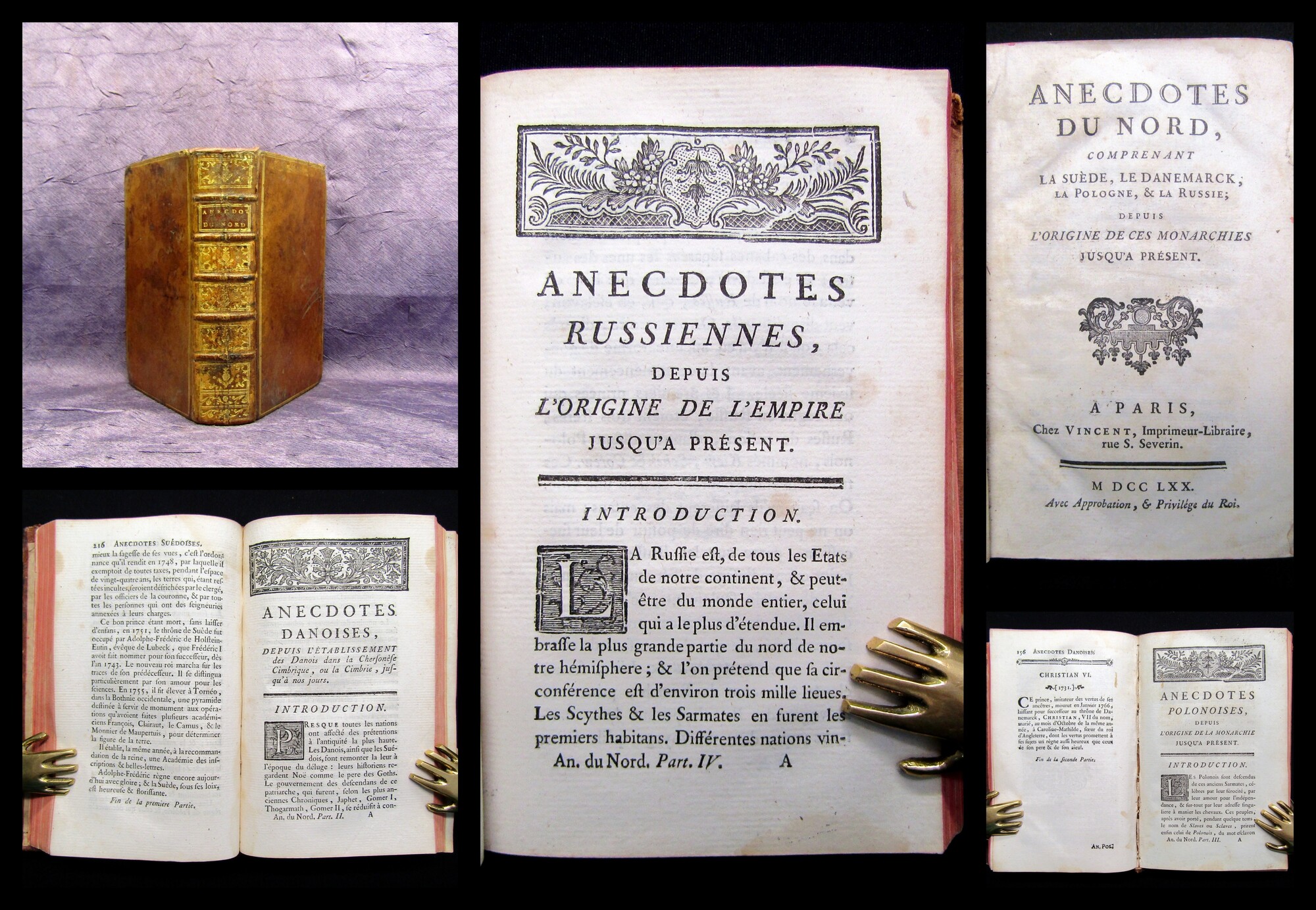 Arckenholtz, Johannes. Memoires concernant Christine Reine de Suede,pour servir d´eclaircissement a l´histoire de son regne et principalement de sa vie privée, et aux evenements de l´histoire de son temps civile et literaire. Amsterdam & Leipzig, Pierre Mortier, 1751. 4°, mit 2 gest. Titelvignetten, 3 gest. allegorischen Kopfvignetten und 43 Abbildungen auf 19 Textkupfern, XXVIII, 560 S., 1 nn. Bl., 8 nn. Bll., 348 S., 202 S., 2 nn. Bll., 144 S., 34 S., 38 nn. Bll. (le. w), spät. Ldr. KOBV - BV012174561 - Erste Ausgabe in 2 Bänden der "Historischen Merkwürdigkeiten der Königin Christina von Schweden", ohne die später erschienenen Bände 3 und 4. Späterer brauner Ganzledereinband über 4 echten Bünden, kaum berieben oder bestossen, mit kleiner Fehlstelle am unteren Rücken. Papierbedingt durchgehend gebräunt, teils etwas fleckig. Die schönen Kupfer, u.a. von Tanjé und Schenck, in kräftigen Abdrücken. Bestell-Nr: 8-0-2..........verkauft | ||