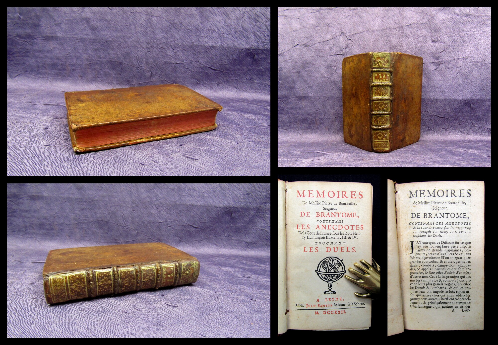 [Basnage de Beauval, Jacques]. Dissertation Historique Sur Les Duels et Les Ordres de Chevalerie. Amsterdam, Pierre Brunel, 1720. kl. 8°, 8 Bll., 163(1) S., 5 Bll., 2(w) Bll., goldgepr. Ldr. d. Zt. Barbier I 1060 - Erste Ausgabe. Einband etwas berieben, gering bestoßen, vorderer und hinterer Deckel mit flachen, oberflächigen Wurmspuren. Papier sauber. Sehr gutes Exemplar. Bestell-Nr: 8-3-238..........verkauft | ||