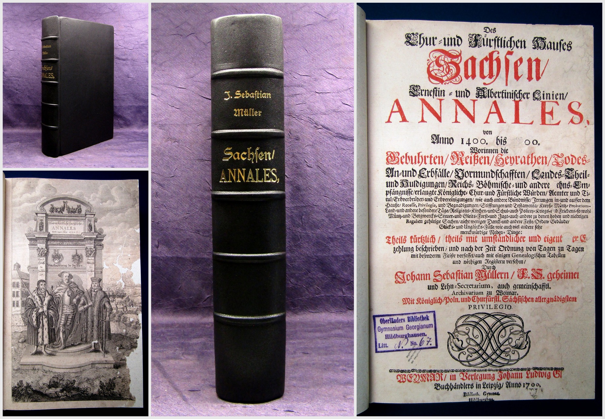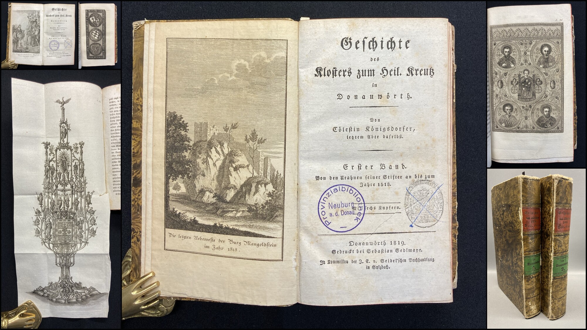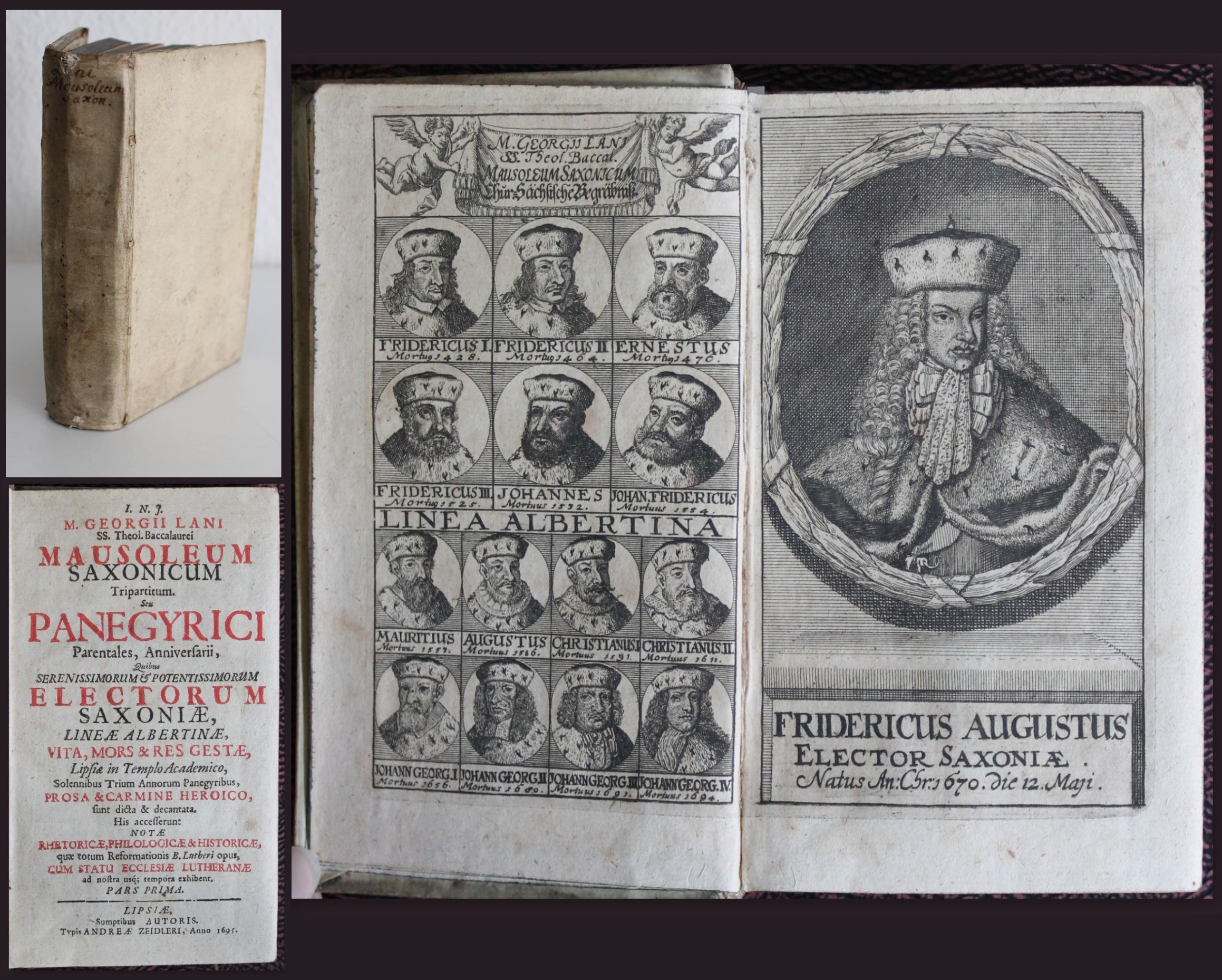 Anonym [Engelhardt, Carl August]. Das goldne Regierungs-Jubelfest Sr. Königl. Majestät Friedrich August des Gerechten. Gefeiert von Seinen treuen Sachsen am 20. September 1818. 1. + 2. Teil (v. 3) in 1 Bd. Dresden, Hgl. priv. Hofbuchdruckerei, 1818. gr. 8°, mit 5 (1 gefalt.) Holzschnitten und 18 (2 gefalt.) Kupferstichen, VIII, 84 S., 115 S.; VIII, 244, 158 S., 1 Bl., Ldr. d. Zt. mit RS. Goedeke IX, 276, 18; Holzm.Boh. III, 11263 - Erste Ausgabe. Band 1 beschreibt die Feierlichkeiten in Pillnitz und Dresden, Band 2 im Meißner, Leipziger und Erzgebirgischen Kreis. Der geflammte Einband mäßig berieben und bestossen. Papierbedingt etwas gebräunt, leicht braunfleckig. Eine Tafel mit kleinem seitlichen Einriss. Gutes Exemplar. Bestell-Nr: 8-1-106..........verkauft | ![]() | |