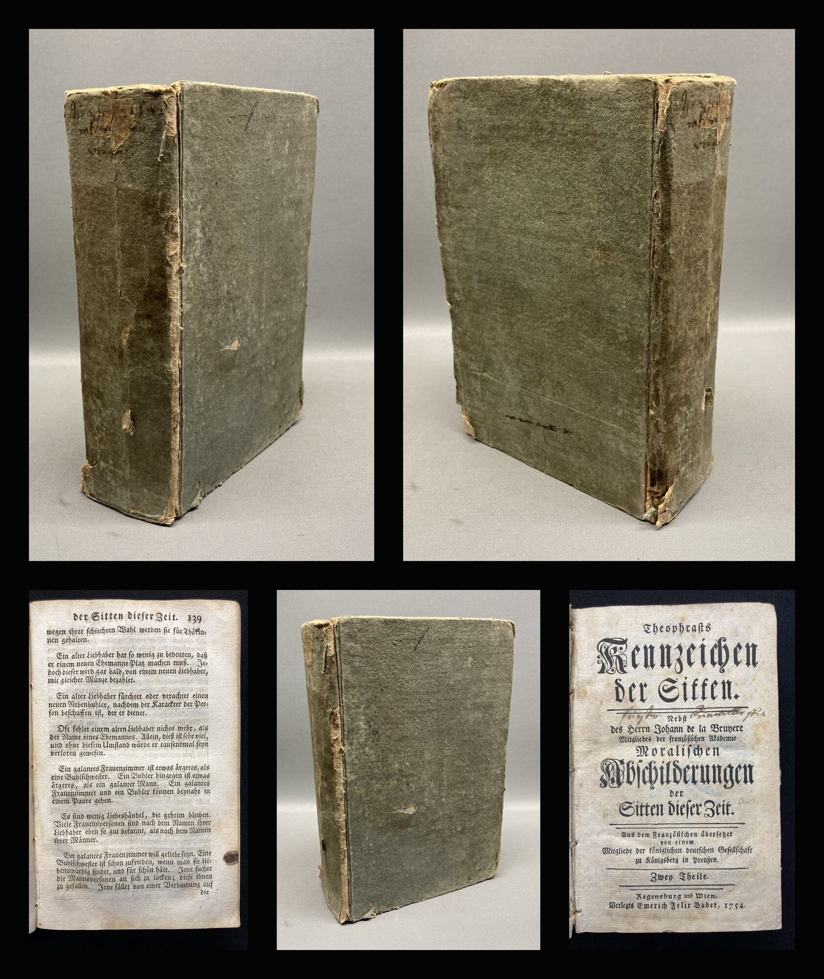 . Sammelband mit 2 Werken: 1) Voltaire. Die Grüne Brieftasche voll Analecten an Hr. D. C. F. Bahrdt, von Voltaire u.s.f. [...] o.O., o.Dr., 1781, 8°, 88 S.; vorgeb.: 2) Huber (Übs.). Denkwürdigkeiten aus dem Leben des Theodor Agrippa d`Aubigné, Stallmeisters von Heinrich dem Vierten, von ihm selbst an seine Kinder geschrieben. Aus dem Französischen übersetzt [...]. Tübingen, Jacob Friedrich Heerbrandt, 1780, 8°, XX, 324 S., Ppbd. d. Zt. , , . . Einband bergriffen, bestoßen und etwas fleckig, Rücken unten mit Fehlstelle im Bezugspapier. Papier gebräunt und braunfleckig. Seltener Titel. Bestell-Nr: 8-0-258..........Preis auf Anfrage | ||