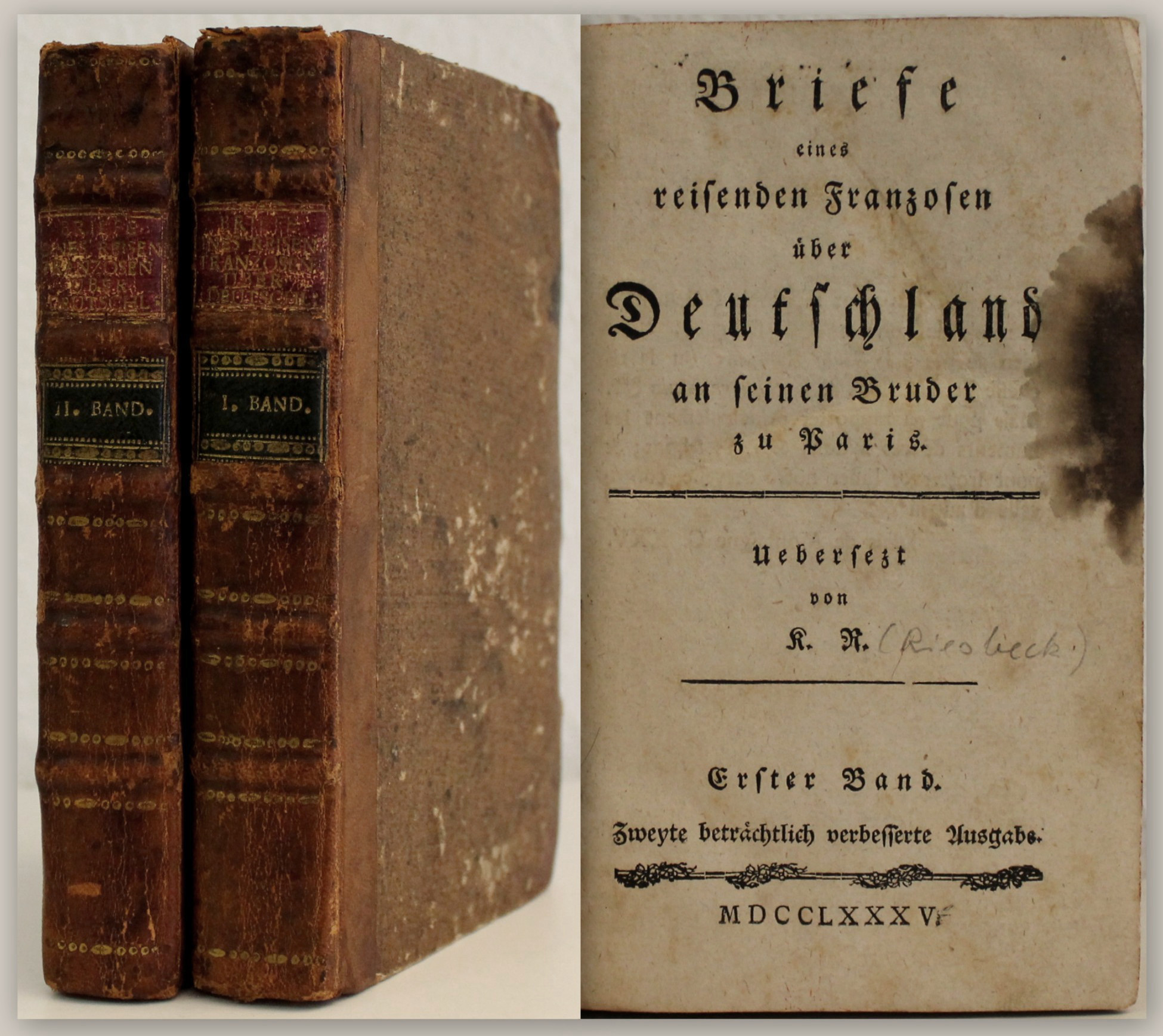 Sevigne, Marie de Rabutin-Chantal, Marquise de / Mauvillon, Jakob. Versuch einer Uebersetzung der Briefe der Marquisin von Sevigne, mit historischen und critischen Erläuterungen von dem Hrn. Mauvillon dem Sohn. Braunschweig und Hildesheim, Schrödersche BH, 1765. 8°, mit einigen Holzschnittvignetten und -initialen, 492 S., Ppbd. d. Zt. Frühes, wohl Erstlingswerk des deutschen Aufklärers Jakob Eléazar (de) Mauvillon. Einband berieben, bestoßen und fleckig. Bezugspapier des Rückens fehlend. Vorderer Vorsatz fehlend, Spiegel und Titel mit altem Besitzeintrag. Titel mit altem blindgeprägtem Wappenstempel. Papier etwas gebräunt, sehr vereinzelt minimal braunfleckig. Gutes Exemplar. Bestell-Nr: 8-0-212..........verkauft | ||