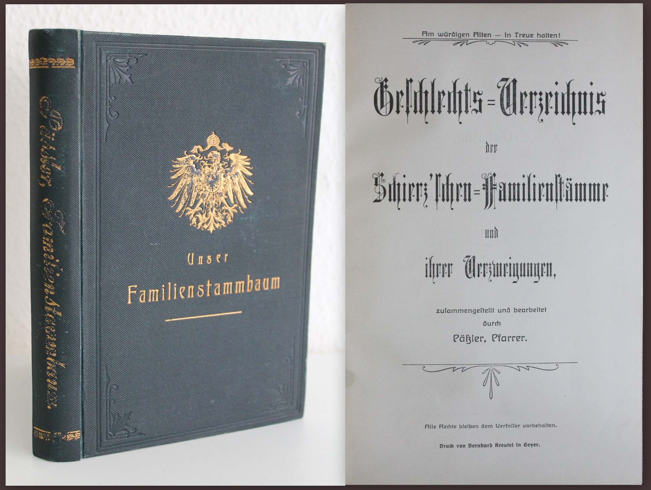 Vitzthum von Eckstädt, Graf Rudolf. Beiträge zu einer Vitzthumschen Familiengeschichte. Leipzig, Zentralstelle für Deutsche Personen- und Familiengeschichte, 1935. 4°, mit 27 Tafeln, XI, 415 S., 1 Bll., OLn. im PpSchuber. Einband nahezu verlagsfrisch. Papier sauber, sehr vereinzelt zarte Anstreichungen mit Bleistift im Weißen Rand. Erstes Blatt und Vorsatz mit leichter Knickspur in oberster rechter Ecke. Sehr gutes Exemplar. Bestell-Nr: 8-2-254..........verkauft | ||