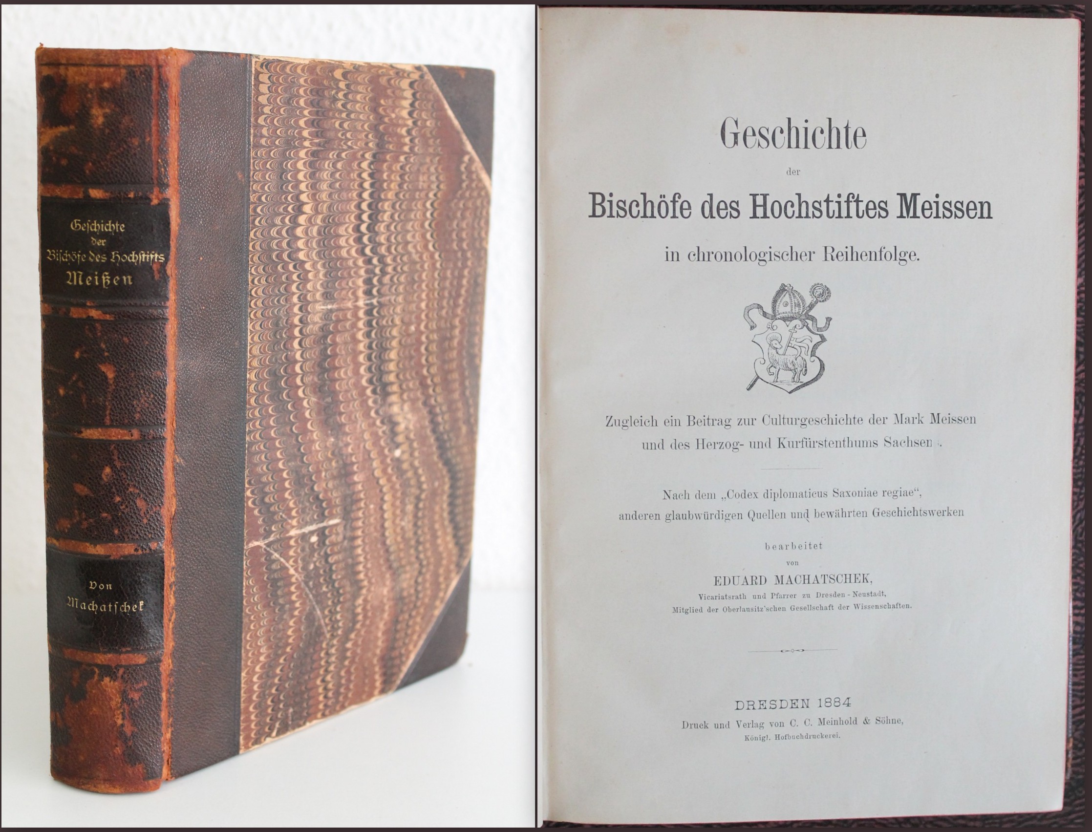 Zahn, Louis, Dr. Geschichtliches der Stadt Lommatzsch, nebst einem Verzeichnis der dasigen Pastoren, Diakonen, Rektoren und Bürgermeister. Lommatzsch, G. Gerstenberg, 1895. 8°, mit 1 ausfaltbaren Tafel (Facsimile der Dillich`schen Federzeichnung / Ansicht von Lommatzsch, entworfen in der Zeit von 1623 - 1627), 4 Bll., 253 S., XI, neuer Ln. mit Rückentitel. Neuer, fester Einband. Tafel sowie erste und letzte Blatt etwas braunfleckig, sonst frisch. Gutes Exemplar. Bestell-Nr: 8-1-214..........verkauft | ![]() | |