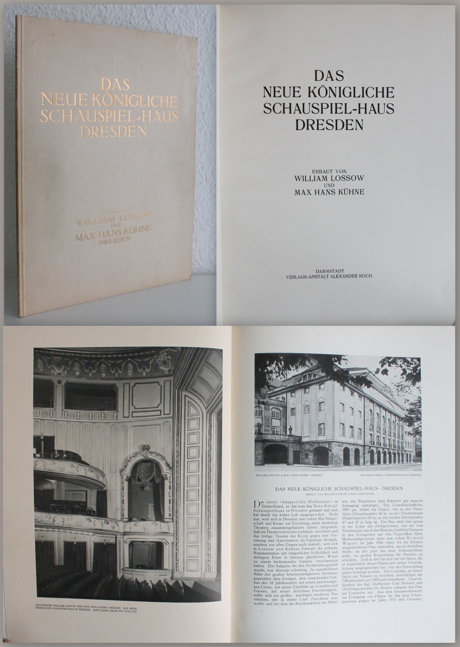 Anonym. Das Neue Königliche Schauspiel-Haus in Dresden. Erbaut von William Lossow und Max Hans Kühne. Darmstadt, Verlags-Anstalt Alexander Koch, o. J. (um 1913). 4°,mit einigen Abbildungen sowie Grundrissen und Querschnitten des Schauspielhauses, 1 Bl., 35 S., OBrosch.. Einband leicht berieben und bestoßen, vereinzelt etwas braun- und fingerfleckig. Am oberen Rand des Buchdeckels mit kleinen Kritzeleien. Papierbedingt etwas gebräunt. Insgesamt sehr gutes Exemplar.. Bestell-Nr: 8-1-155..........200,00 € (inkl. MwSt. zzgl. Versand) | ![]() | |