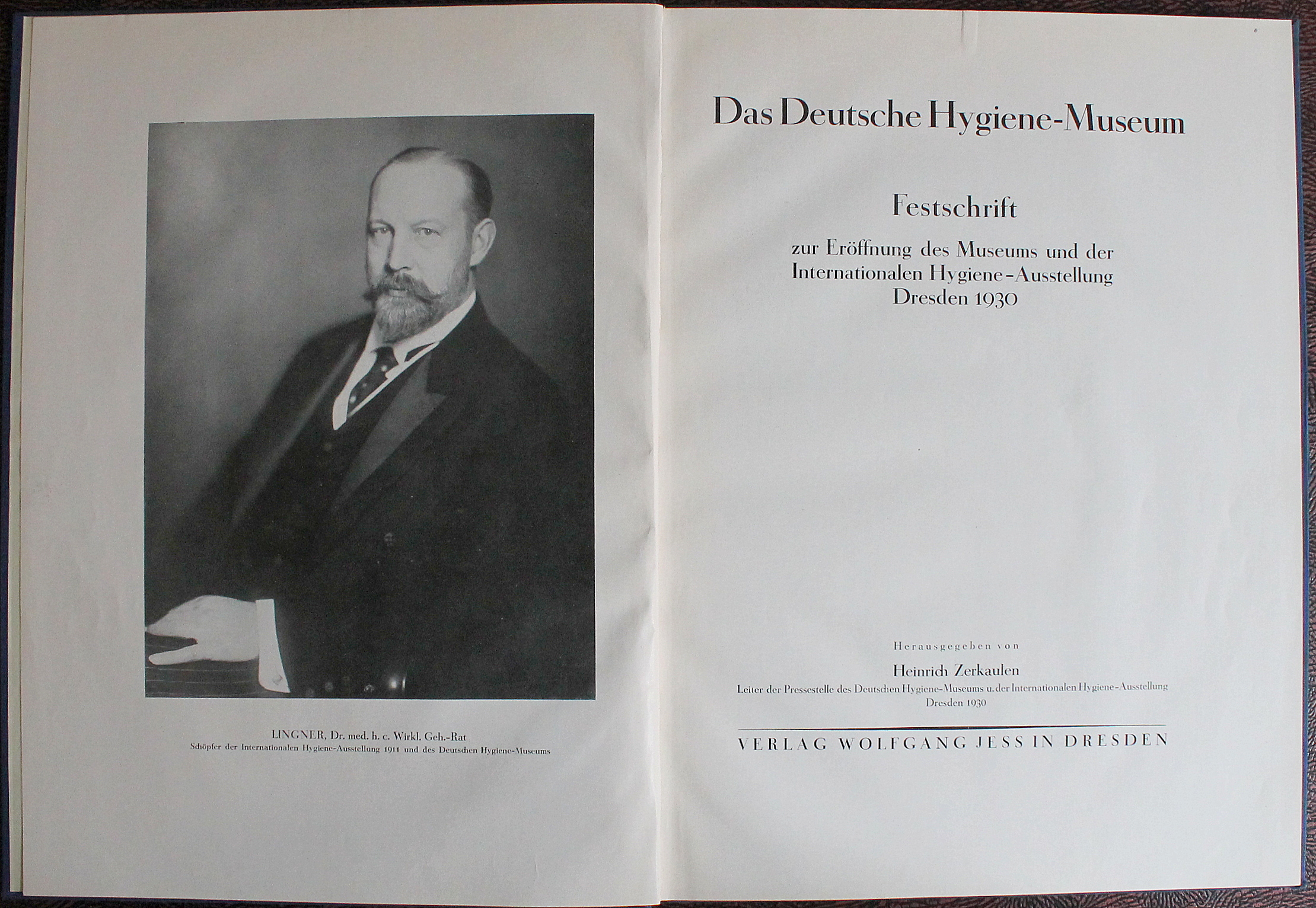 Zerkaulen, Heinrich (Hrsg.). Das Deutsche Hygiene-Museum. Festschrift zur Eröffnung des Museums und der Internationalen Hygiene-Ausstellung Dresden 1930. Dresden, Wolfgang Jess, 1930. 4°, mit einem Frontispiz Dr. Lingners und einigen Abbildungen, 2 Bll., 85 S., goldgepr. Ln.. Einband leicht berieben und bestoßen. Rücken aufgehellt. Kapitale und Rücken etwas ausgefranst. Papierbedingt leicht gebräunt. Ein Blatt mit kleinem Einriss im weißen Rand. Insgesamt gutes Exemplar.. Bestell-Nr: 8-1-159..........verkauft | ![]() | |