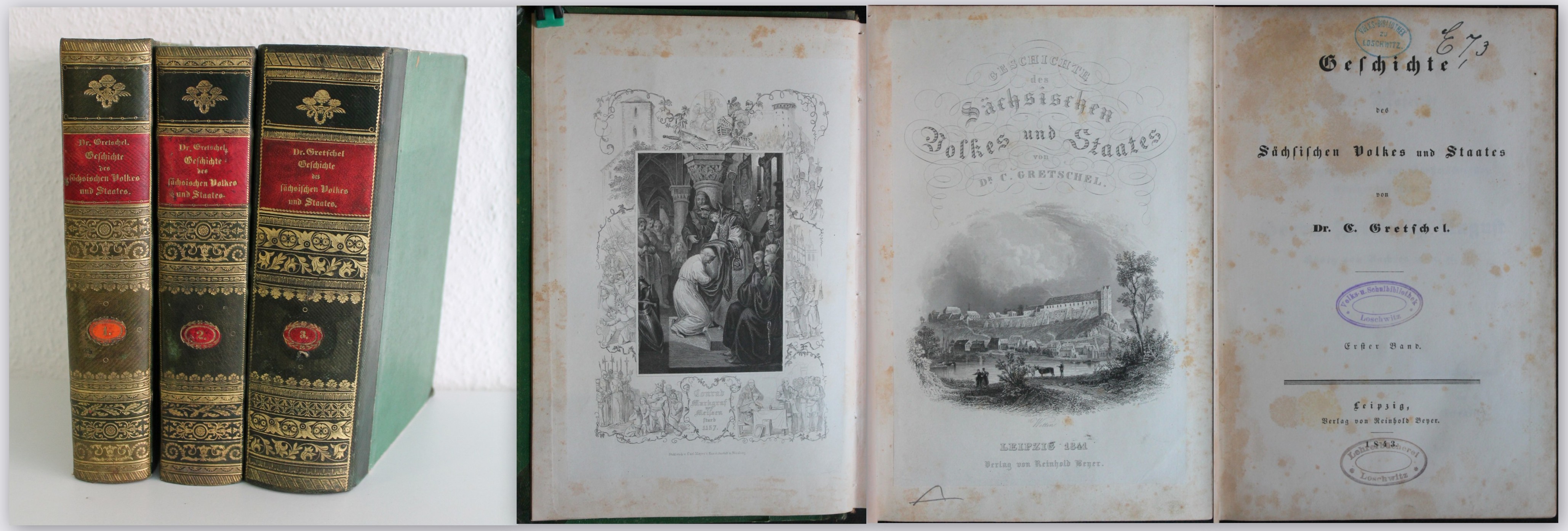Taggesell, Carl. Chronik der privilegirten Scheiben-Schützen-Gesellschaft zu Dresden. Entnommen aus dem Königl. Staatsarchiv, dem Archiv der Schützengesellschaft, der Königl. Bibliothek und mehreren werthvollen Chroniken der Vorzeit [...]. Dresden, Julius Blochmann jun., 1855. 8°, 283 S., Ppbd. d. Zt. Exemplar aus der Bibliothek des Theodor Bienert, Sohn von Gottlieb Traugott Bienert. Theodor übernahm mit seinem Bruder die bekannte Bienertmühle und erbaute die Dresdner Hafenmühle. Einband berieben und etwas bestoßen bestoßen, an den Kapitalen und Gelenken etwas mehr berieben. Rücken mit hs. Titel und Bibliotheksschild. Vorderer Spiegel mit altem hs. Beitzeintrag, Titel mit Besitzstempel Theodor Bienerts. Papierbedingt gebräunt und vereinzelt leicht braun- und fingerfleckig.. Bestell-Nr: 8-1-244..........verkauft | ||