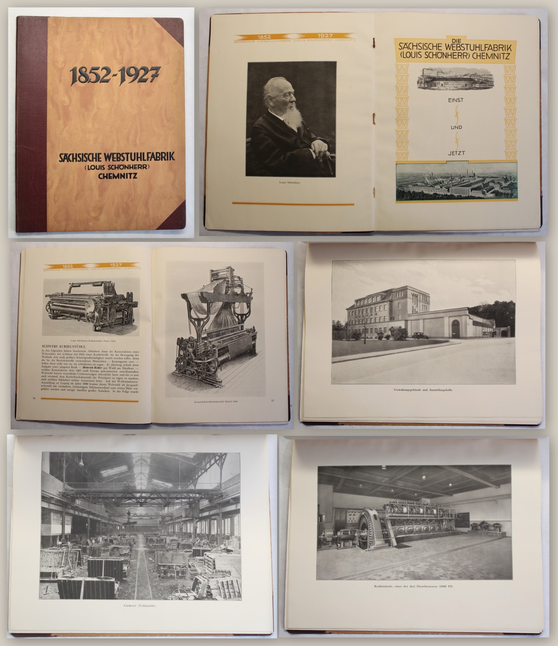 . Die Sächsische Webstuhlfabrik (Louis Schönherr) Chemnitz. Einst und Jetzt. Chemnitz, ohne Verlag, 1927. 4°, mit vielen Abbildungen, 46 S., HLn. Einband kaum berieben und bestoßen. Zwei Lagen lose. Klammerung etwas rostig. Papierbedingt leicht gebräunt. Gutes Exemplar. Bestell-Nr: 8-1-187..........verkauft | ![]() | |