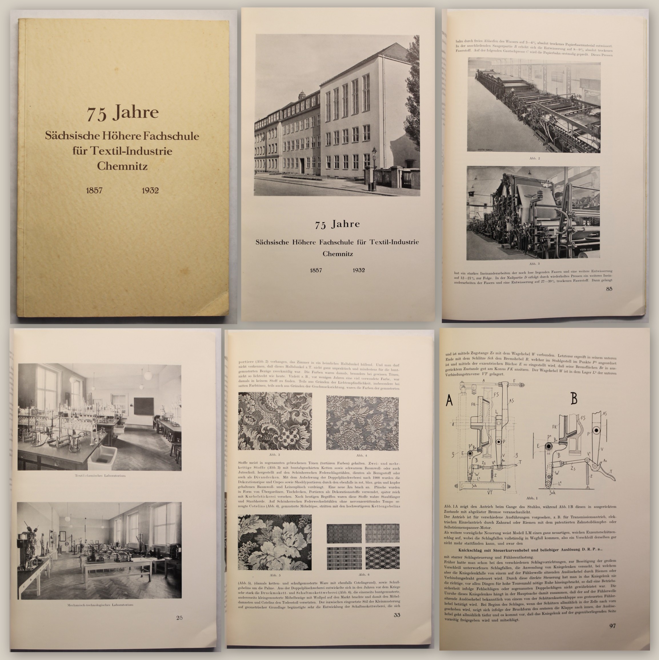 . 75 Jahre Sächsische Höhere Fachschule für Textil-Industrie Chemnitz 1857-1932. Chemnitz, Großdruckerei J.C.F. Pickenhahn & Sohn A.G., 1932. 4°, mit vielen Abbildungen, 146 S., Brosch. Der helle Einband kaum berieben und bestoßen, etwas fleckig. Papierbedingt leicht gebräunt, untere rechte Ecke Knickspurig. Gutes Exemplar. Bestell-Nr: 8-1-186..........verkauft | ![]() | |