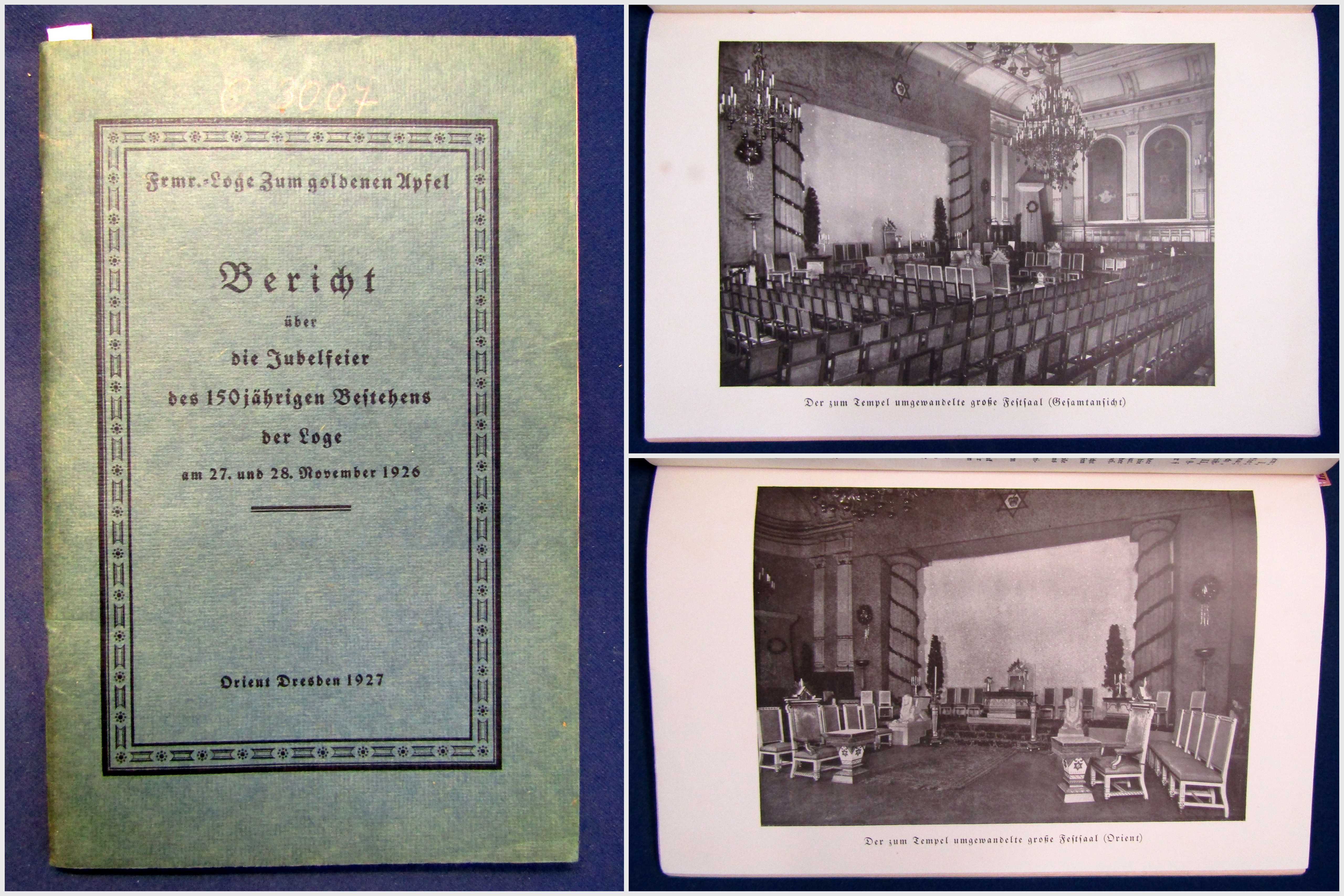 . Bericht über die Jubelfeier des 150 jährigen Bestehens der Loge. Dresden, Orient, 1927. 8°; 47 S.; Broschur. Einband gering berieben und bestoßen. Papierbedingt minimal gebräunt. Gutes Exemplar. Bestell-Nr: 8-1-367..........verkauft | ![]() | |