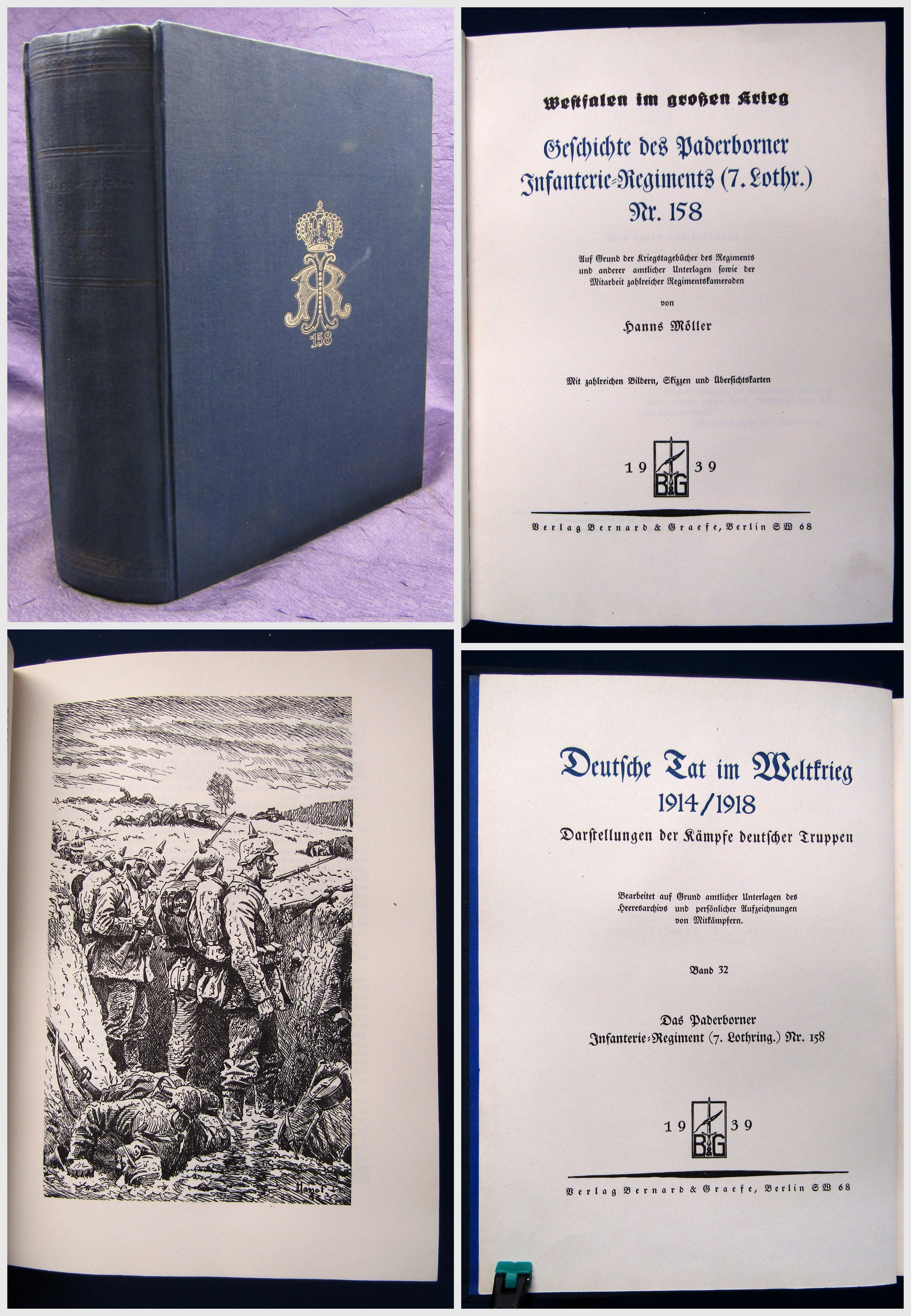 Trümper-Bödemann. Das Königl. Sächs. Reserve-Infanterie-Regiment Nr. 102. Chemnitz, Hugo Wilisch (Graphische Werkstätten), 1929. 4°, mit zahlreichen Abbildungen im Text, einer ausfaltbaren Karte und 5 Karten in hinterer Kartenlasche, 307 S., ill. OLn. Erschien als Heft 57 der Schriftfolge "Erinnerungsblätter deutscher Regimenter". Einband berieben und etwas bestoßen. Papier sauber, Vorderer Spiegel und Vorsatz mit altem Bestzeintrag, hinterer Spiegel mit eingeklebter Quittung des Kameradschaftsvereins des 102. Regimentes. Gutes Exemplar. Bestell-Nr: 8-1-215..........verkauft | ![]() | |