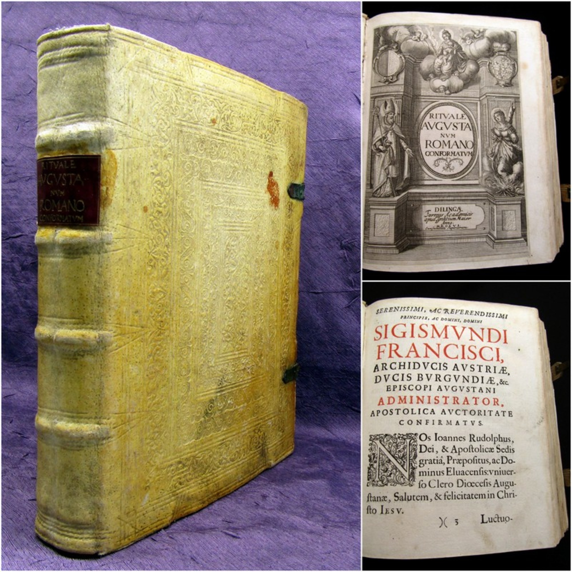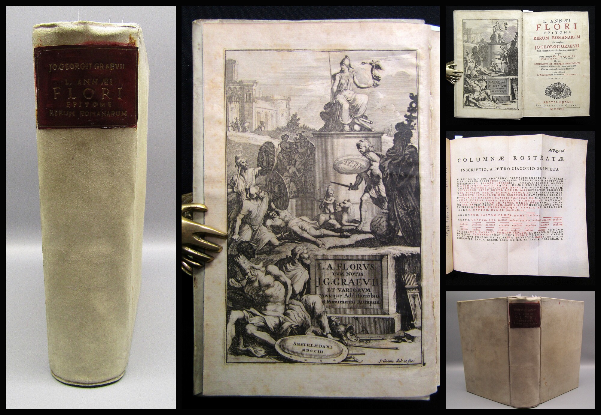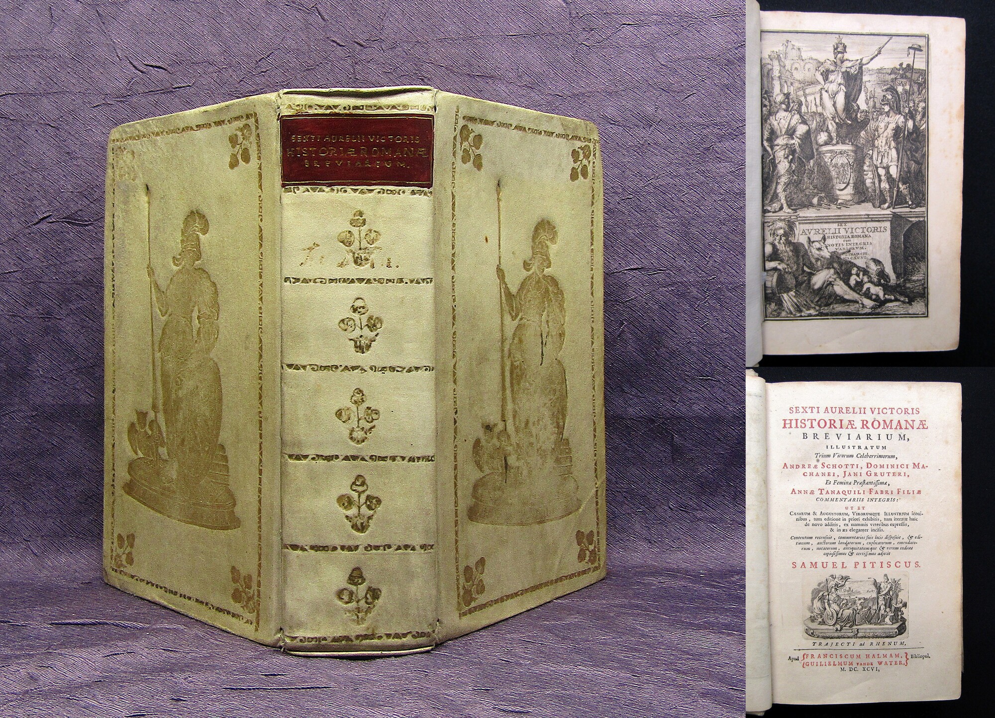 Victor, Sextus Aurelius / Pitiscus, Samuel. Sexti Aurelii Victoris Historiae Romanae Breviarium, illustratum [...] 2 Bde. in 1. Trajecti ad Rhenum [i.e. Utrecht], Apud Franciscum Halman, Guilielmum vande Water, 1696. gr. 8°(20x12,5cm), mit gest. Titel und zahlreichen Textkupfern, 21 nn. Bll., 434 S., 37 nn. Bll.; 168 S., 14 nn. Bll., 1(w), reichhaltig goldgepr. Pgmt. d. Zt. Einband etwas berieben, kaum bestoßen, Vergoldung etwas abgegriffen. Papier durchgehend etwas gebräunt und braunfleckig. Gutes Exemplar in schönem Einband. Bestell-Nr: 8-3-583..........verkauft | ![]() | |