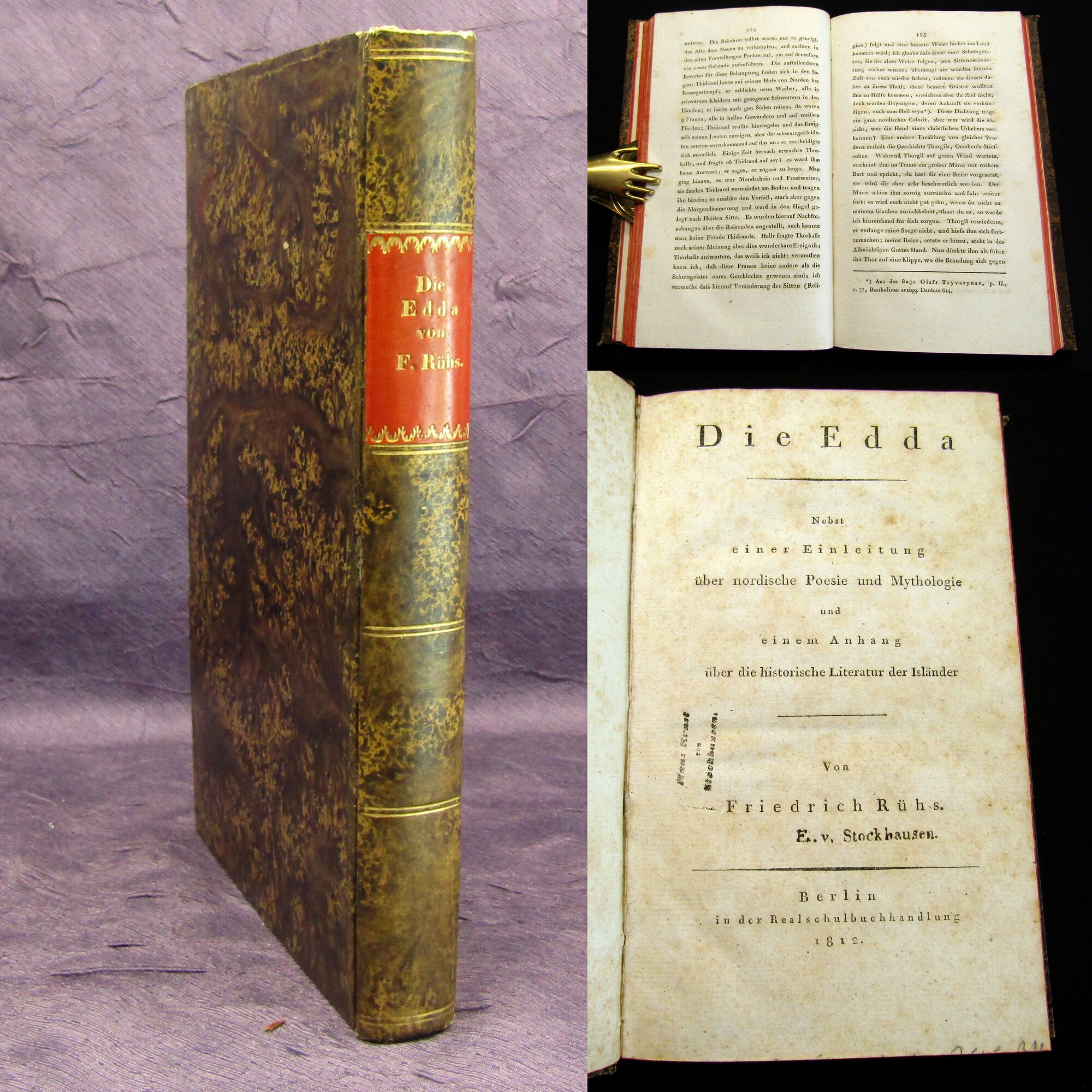 Suhm, P.F.. Symbolae ad literaturam Teutonicam antiquiorem. Ex codicibus manu exaratis, qui Havniae asservantur.. Havniae, Petri Horrebowii, 1787. 8°(ca.23x19cm), Exlibri auf Spiegel, XXXX, 480 Sp., Halbledereinband. Goedeke I, 251; Goedeke I, 134 - Die Sammlung enthält Erstdrucke Kopenhagener Handschriften wie der "Historia Laurini" (Goedeke I, 251), der "Historia Darifanti (Goedeke I, 134), ferner "Glossaria Antiqua Latino-Theotisca" (S. 173-411) u.a. - Einband berieben und bestoßen, Rs. mit Goldprägung, Rücken mit floraler Goldprägung, roter Rundumschnitt, alter Bibliotheksstempel auf Titel, Papier altersbedingt gebräunt. Seltenes Exemplar. Bestell-Nr: 8-0-574..........230,00 € (inkl. MwSt. zzgl. Versand) | ![]() | |