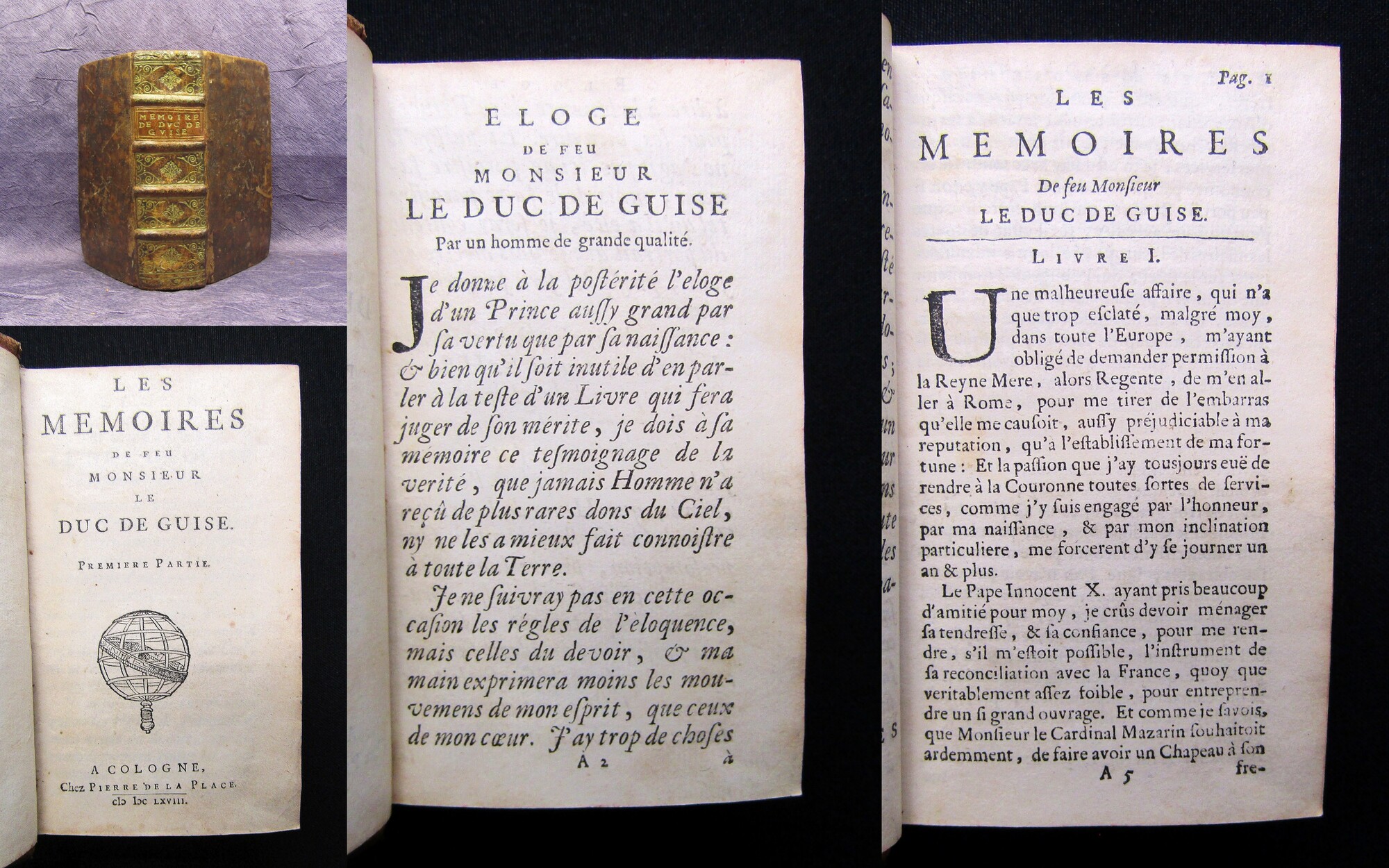 [Lussan, Marguerite de]. Vie de Louis Balbe-Berton de Crillon, surnommé le Brave: et mémoires des regnes de Henri II, François II, Charles IX, Henri III et Henri IV, pour servir à l'histoire de son temps. 2 Bände. Paris, Pissot, 1757. 8°, 2 Bll., 345 S.; 2 Bll., 307 S., 2 Bll., Ldr. d. Zt. Erste Ausgabe. Einbände etwas berieben, kaum bestoßen, oberes Kapital von Bd. 2 abgegriffen, vorderer Deckel von Bd. 1 mit 2 Wurmspuren. Gelenke von Bd. 2 mit 3 kleinen Wurmlöchlein. Papier altersbedingt minimalst gebräunt. Spiegel von Bd.1 mit altem hs. Kaufvermerk. Gutes, dekoratives Exemplar. Bestell-Nr: 8-3-239..........190,00 € (inkl. MwSt. zzgl. Versand) | ||