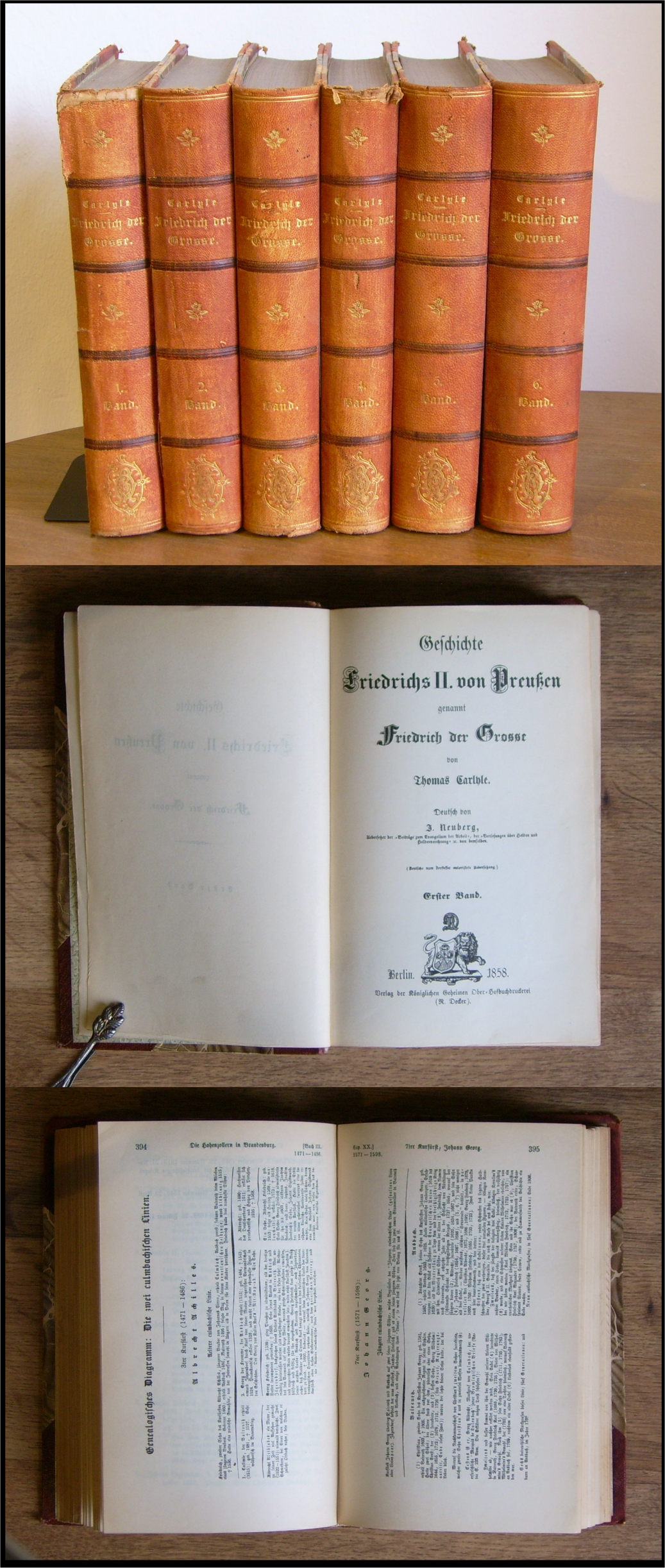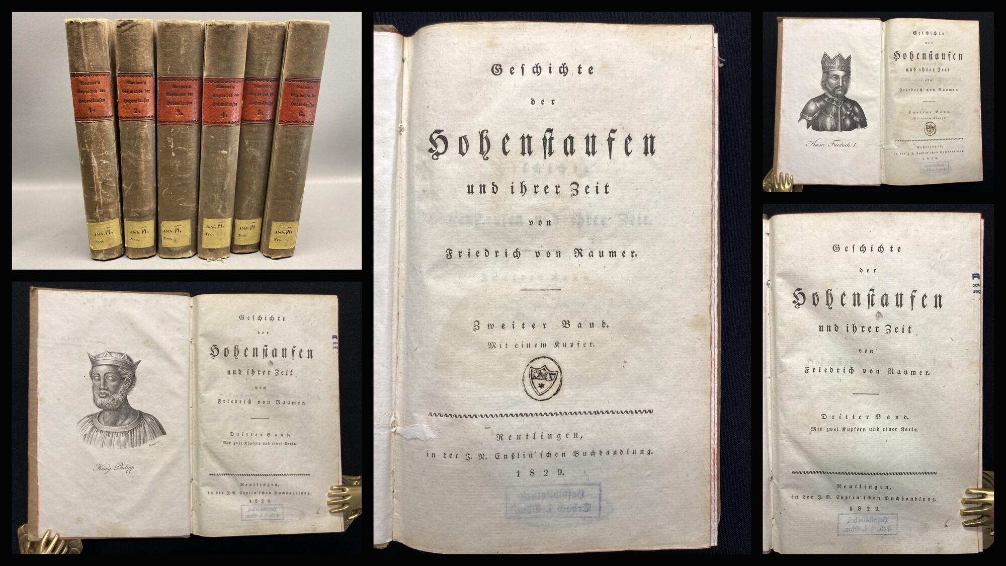 Sternagel, J. G.. Geschichte Schlesiens von den ältesten Zeiten bis zur Besitznahme desselben durch Friedrich den Großen 1740; Geschichte Schlesiens seit dem jahre 1740. Breslau, August Schall, 1802 - 1804. 8°, Titel, 2 Bll., 246 S., Titel, 2 Bll., 260 S., Titel, 2 Bll., 268 S., Ppbd. d. Zt. Seltene erste Ausgabe, erschien als Band 3-5 des "Hausbedarfs der Geschichte der Königlich Preußischen Länder". Einbände berieben, etwas bestoßen, Bei Band 2 und 5 die oberen Rückenschildchen fehlend. Band 4 hinterer Vorsatz mit alten, handschriftlichen Besitzvermerk. Papier altersbedingt leicht gebräunt, vereinzelt etwas braunfleckig. Gute Exemplare. Bestell-Nr: 8-0-263..........verkauft | ||