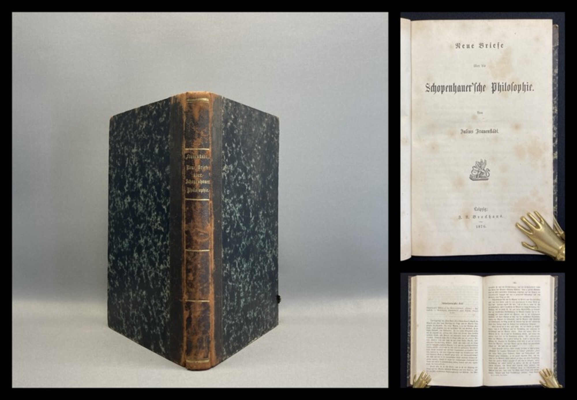 Frauenstädt, Julius. Neue Briefe über die Schopenhauer´sche Philosophie.. Leipzig, Brockhaus, 1876. 8°(ca.22x14cm) - sehr seltene Original-Ausgabe - XIII, 296 S., 2 Bll.; Halbleder. Einband etwas berieben und bestoßen, Gelenke angeplatzt. Papier gering gebräunt, durchgehend etwas braun- und fingerfleckig. Gutes Exemplar.. Bestell-Nr: 13-0-79..........150,00 € (inkl. MwSt. zzgl. Versand) | ![]() | |