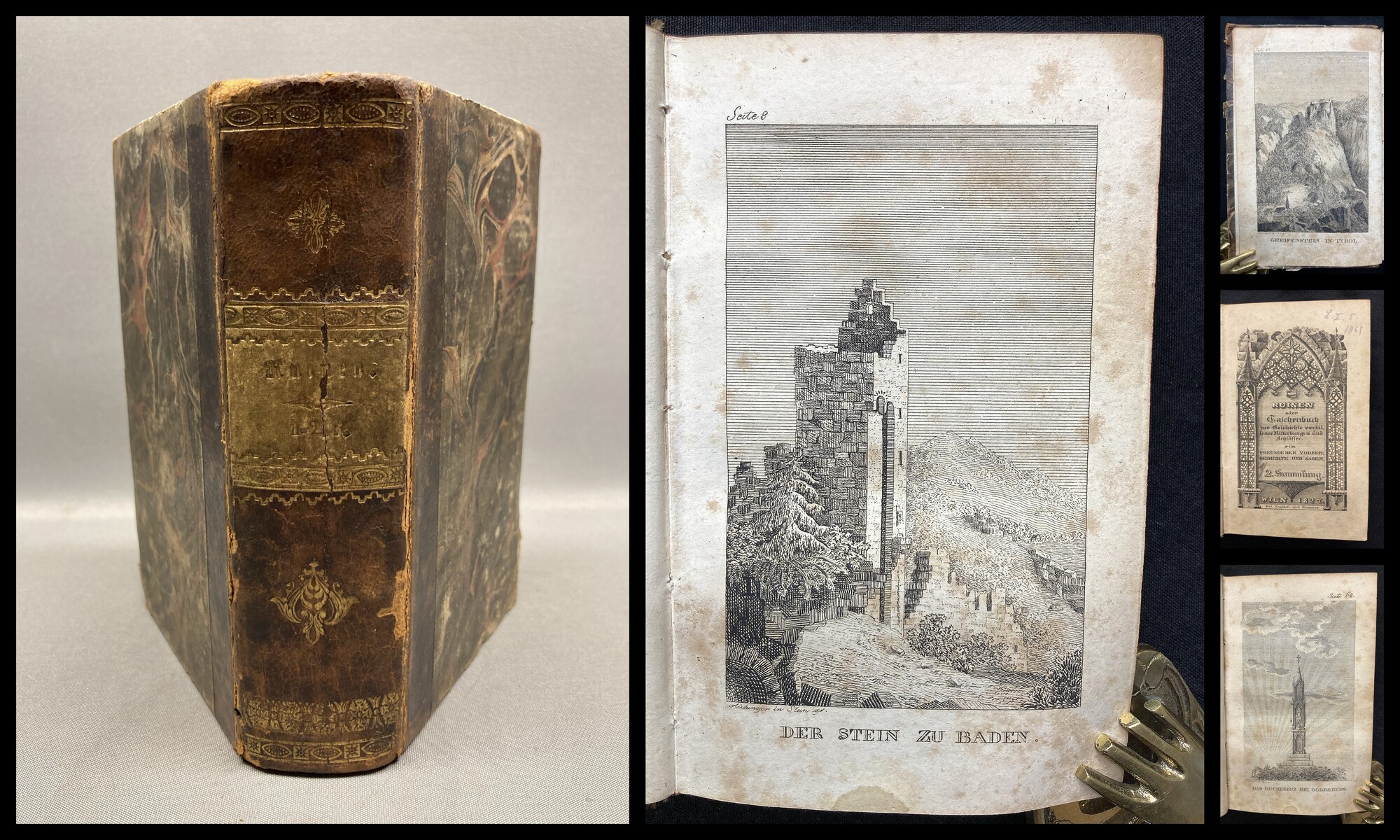. Ruinen oder Taschenbuch zur Geschichte verfallener Ritterburgen und Schlösser für Freunde der Vorzeit, Geschichte und Sagen. 2 Bde. in 1. Vienna, Kaulfuß & Krammer, 1827. kl.8(16x10cm), gest. Titel, 1 Bl., 216 S., 226 S., 1 Bl. gest. Titel, 224 S., 2 Bll., HLdr. mit RS und Goldprägung am Rücken. Einband stärker berieben und beschabt, Ecken bestoßen. Gestochener Titel von Sammlung 1 fehlt, gestochener Titel von Sammlung 2 vor Sammlung 1 gebunden. Kollation mit insgesamt 12 Kupfern, komplett bis auf gest. Titel von Sammlung 1. Papier gering gebräunt und vereinzelt etwas braunfleckig. Bestell-Nr: 16-0-293..........450,00 € (inkl. MwSt. zzgl. Versand) | ||