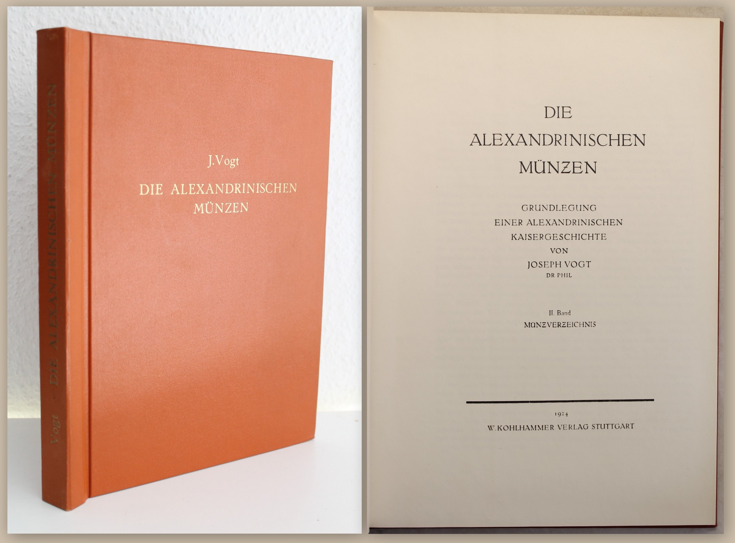 Vogt, Dr. Phil. Joseph. Die Alexandrinischen Münzen - Grundlegung einer alexandrinischen Kaisergeschichte - II. Band Münzverzeichnis. Stuttgart, W. Kohlhammer, 1924. 4°, 1 nn. Bll., 178 S., priv. Ln. Privater, photomechanischer Nachdruck, wohl um 1975, der seltenen Ausgabe 1924. Sehr gutes Exemplar des selbst als Nachdruck seltenen und gesuchten Titels. Bestell-Nr: 20-0-13..........verkauft | ![]() | |