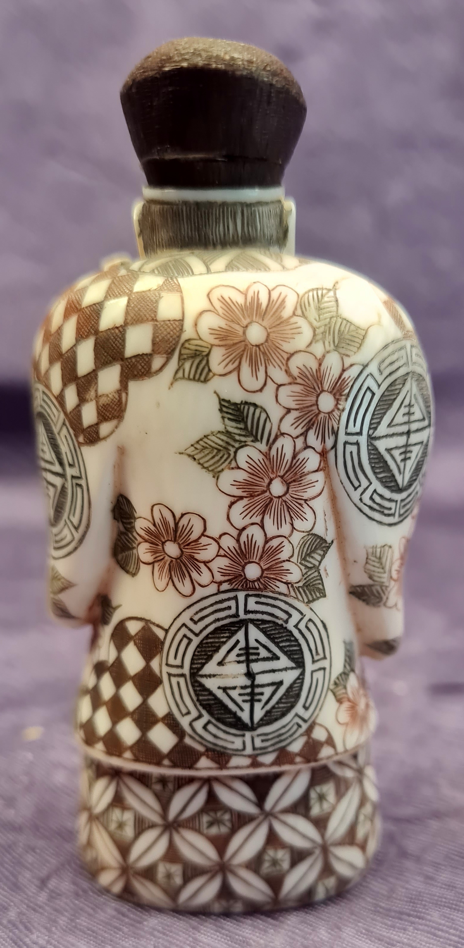 Asiatika - Japan. Okimono. Samurai. , , 1. Hälfte 20. Jhd.. Höhe ca. 9 cm; Unterseitig mit Signatur; Bein, beschnitzt, graviert u. bemalt. Kopfbedeckung mit geklebtem glatten Bruch. Sehr schönes Exemplar.. Bestell-Nr: 24-0-8..........300,00 € (inkl. MwSt. zzgl. Versand) | ![]() | |