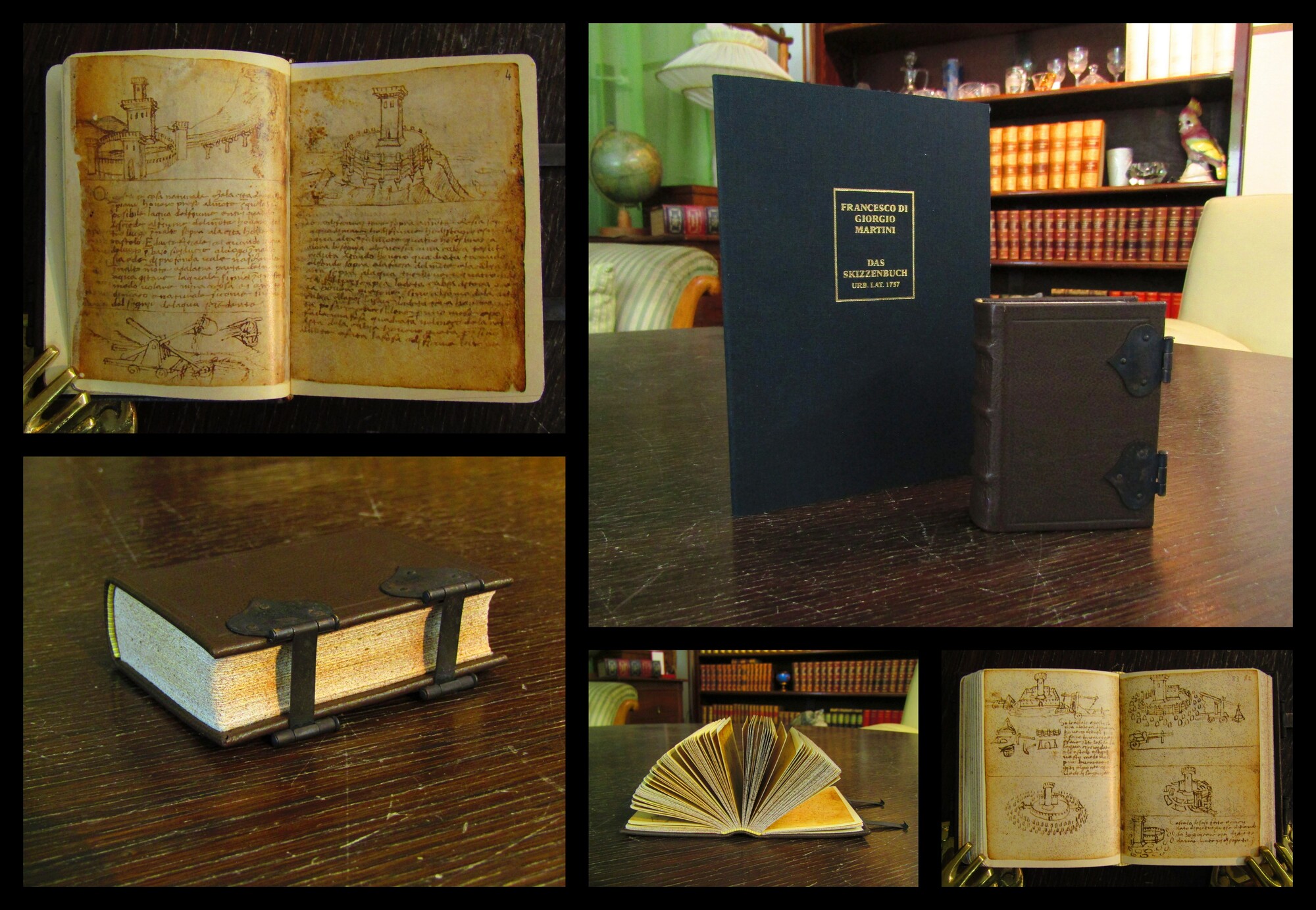 Giorgio Martini, Francesco di,. Das Skizzenbuch des Francesco di Giorgio Martini, Vat. Urb. lat. 1757, Einführung von Luigi Michelini Tocci,. Zürich, Belser Verlag, 1989. Gr. 8° (ca. 23 cm x17 cm) Kassette, 8° (ca. 18 cm x 12,5 cm) Begleitband, 16° (ca. 9 cm x 7 cm) Faksimile, mit zahlreiche Abb.,VIII, 191; 43 S., Ledereinband mit Schließen in Kunstleder/Leinen Kassette mit Begleitband in Leinen. Das Skizzenbuch des Francesco di Giorgio Martini entstand zwischen 1464 und 1478 in Urbino, Italien, und ist das wohl bedeutendste und informativste Traktat über die Baukunst der Renaissance, das bis heute erhalten ist. Kassette minimals berieben. Gesamt sehr schöner Zustand.. Bestell-Nr: 25-0-37..........verkauft | ||
